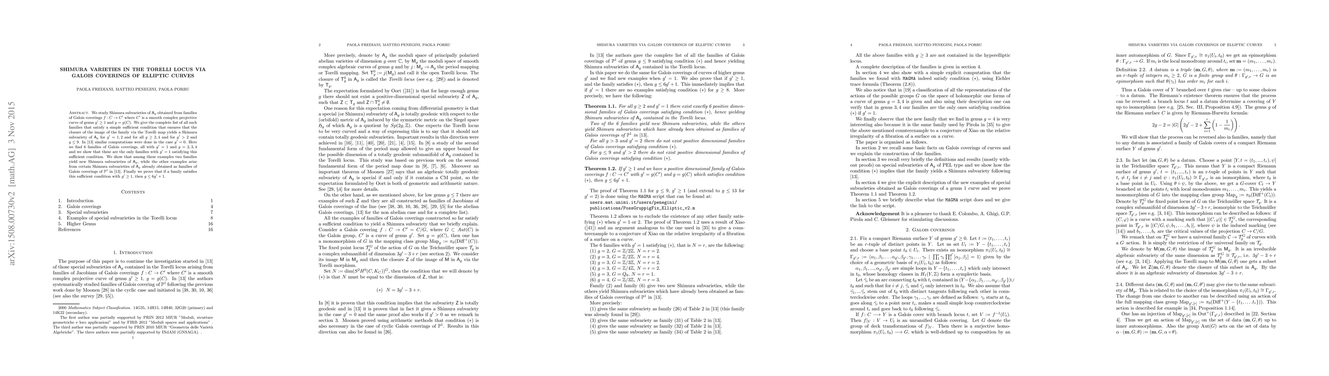 This paper investigates Shimura subvarieties in $\mathsf{A}_g$ derived from Galois coverings of elliptic curves, listing families that meet a condition ensuring their closure under the Torelli map forms Shimura subvarieties. It finds six specific families with $g' = 1$ and $g=2,3,4$, showing two yield new Shimura subvarieties while the others relate to previously known families.