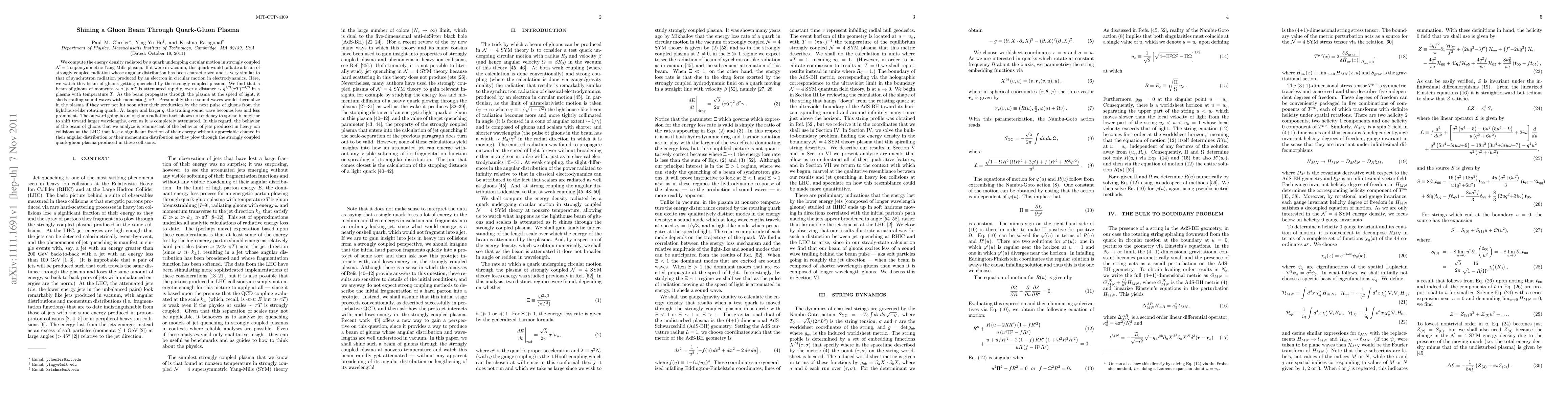 Researchers studied a quark in a hot plasma and found that it radiates a beam of gluons, similar to electron synchrotron radiation, which is attenuated over time without spreading or changing direction, mimicking jets produced in heavy ion collisions.