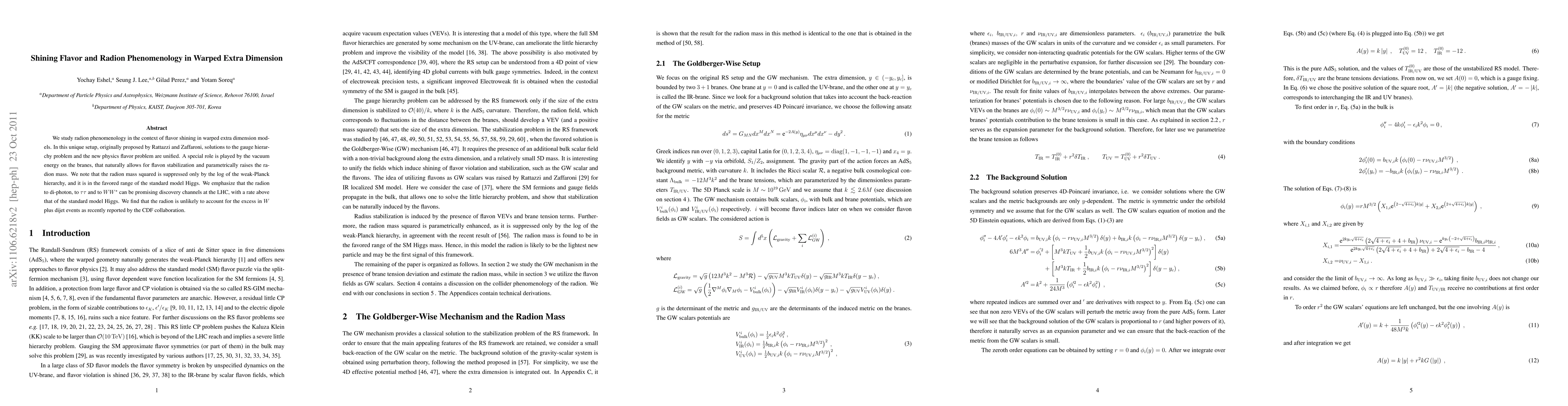 This paper explores radion phenomenology in warped extra dimension models where flavor shining and gauge hierarchy solutions are unified. It finds the radion mass in a favorable range and highlights promising discovery channels at the LHC, while ruling out its role in the reported W plus dijet excess.