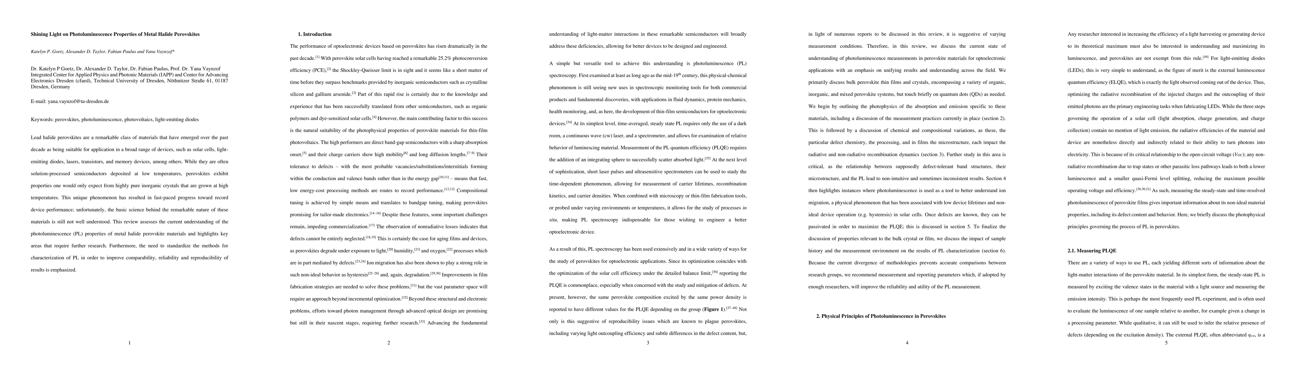 Metal halide perovskites exhibit unusual photoluminescence properties despite being grown at low temperatures, highlighting the need for further research to understand their behavior. Standardizing characterization methods is crucial for improving comparability and reliability of results in this field.
