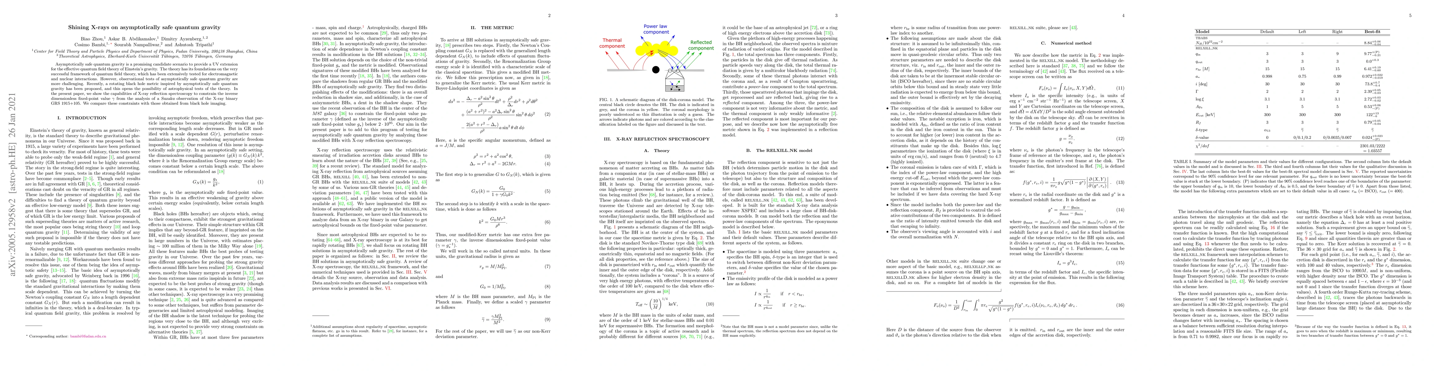 This paper explores the potential of X-ray reflection spectroscopy to test asymptotically safe quantum gravity by analyzing a Suzaku observation of GRS 1915+105, comparing these results with those derived from black hole imaging to constrain the inverse dimensionless fixed-point value $\gamma$.