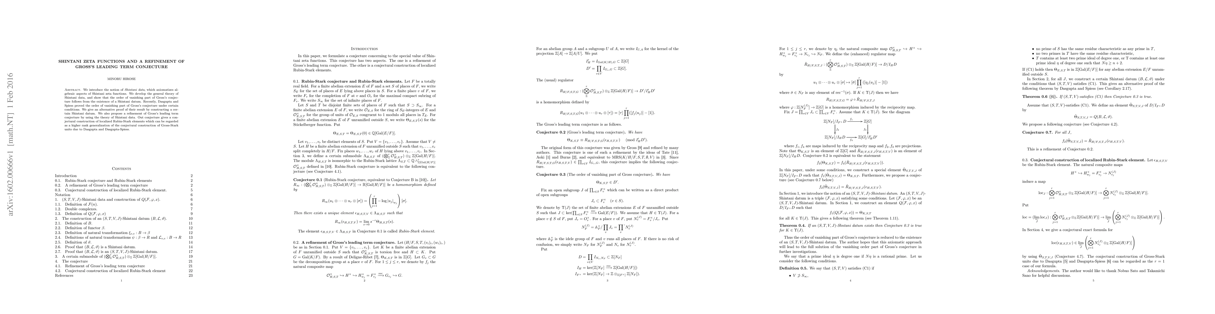 This paper introduces Shintani data to axiomatize Shintani zeta functions and develops its theory, proving the order of vanishing in Gross's conjecture. It also proposes a refined conjecture for the leading term using Shintani data, offering a higher rank generalization of Gross-Stark units.