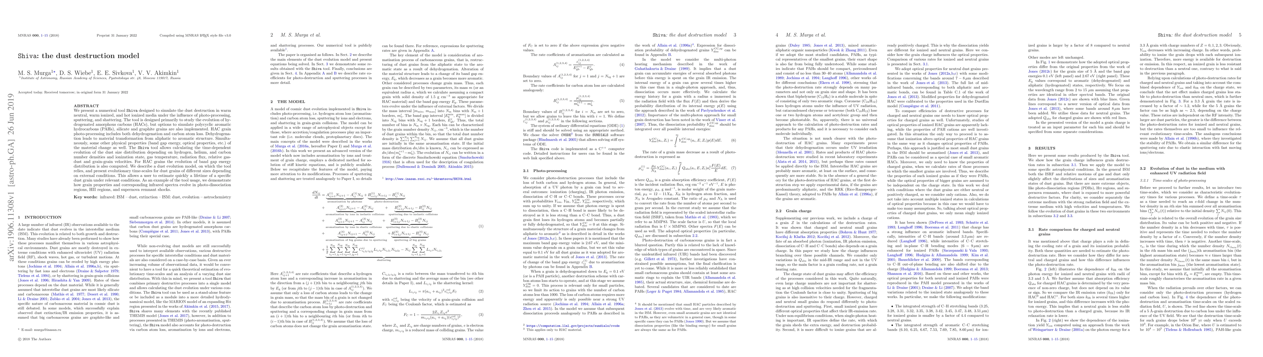 We present a numerical tool Shiva designed to simulate the dust destruction in warm neutral, warm ionized, and hot ionized media under the influence of photo-processing, sputtering, and shattering. The tool is designed primarily to study the evolution of hydrogenated amorphous carbons (HACs), but options to simulate polycyclic aromatic hydrocarbons (PAHs), silicate and graphite grains are also implemented. HAC grain photo-processing includes both dehydrogenation and carbon atom loss. Dehydrogenation leads to material transformation from aliphatic to aromatic structure. Simultaneously, some other physical properties (band gap energy, optical properties, etc.) of the material change as well. The Shiva tool allows calculating the time-dependent evolution of the dust size distribution depending on hydrogen, helium, and carbon number densities and ionization state, gas temperature, radiation flux, relative gas-dust and grain-grain velocities. For HAC grains the evolution of band gap energy distribution is also computed. We describe a dust evolution model, on which the tool relies, and present evolutionary time-scales for dust grains of different sizes depending on external conditions. This allows a user to estimate quickly a lifetime of a specific dust grain under relevant conditions. As an example of the tool usage, we demonstrate how grain properties and corresponding infrared spectra evolve in photo-dissociation regions, H II regions, and supernova remnant shocks.