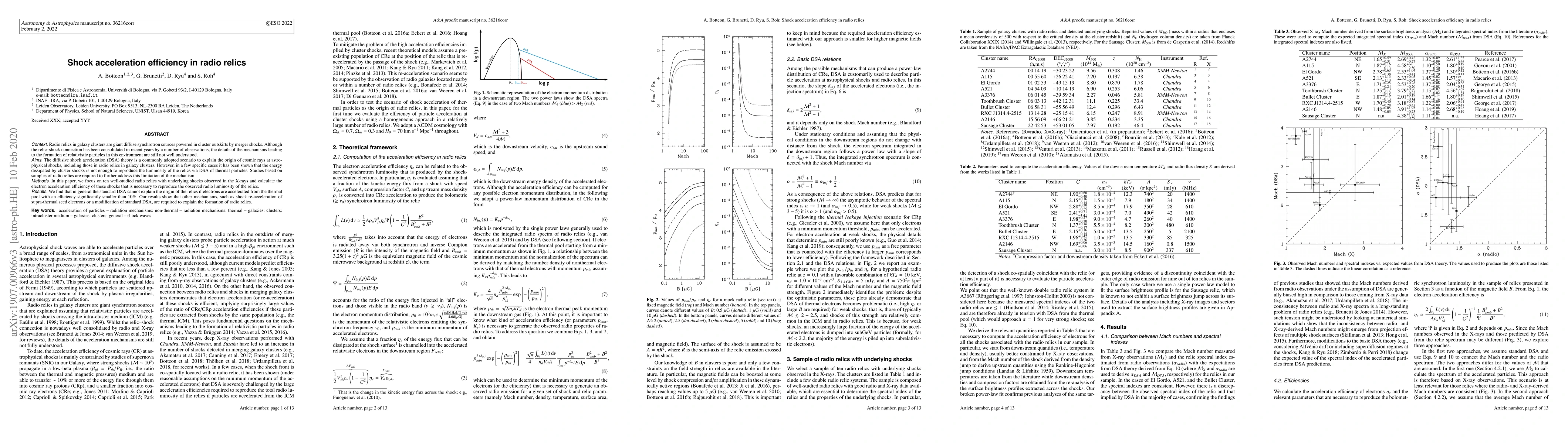 This paper investigates the shock acceleration efficiency in ten well-studied radio relics in galaxy clusters, finding that standard diffusive shock acceleration cannot sufficiently account for their observed luminosity. It suggests alternative mechanisms, such as shock re-acceleration of supra-thermal electrons, are needed to explain the phenomenon.