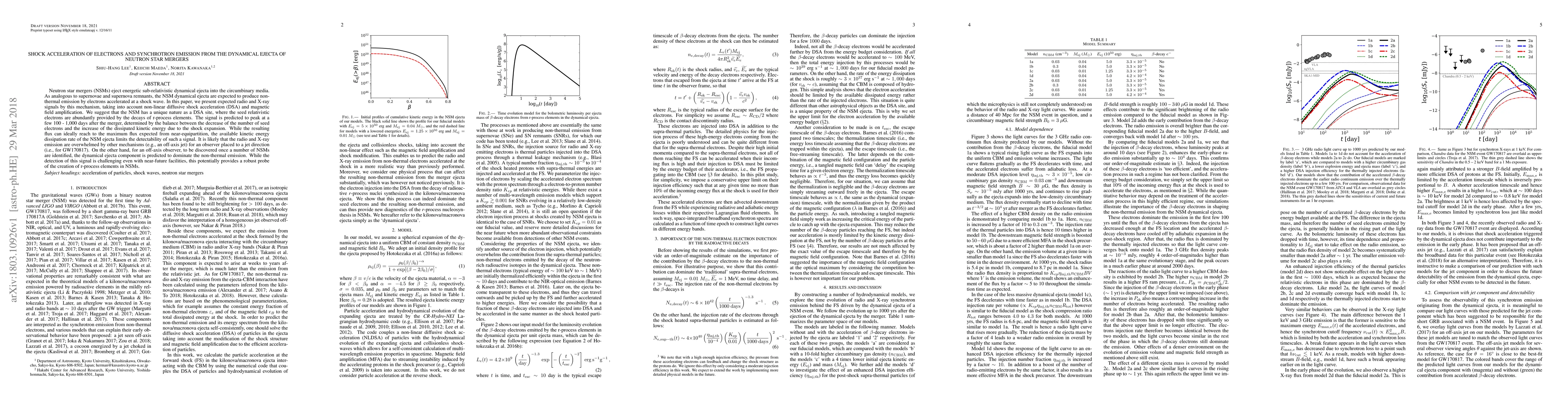 This paper investigates the shock acceleration of electrons in neutron star mergers' dynamical ejecta, predicting radio and X-ray signals from non-thermal emission. The study highlights the unique role of neutron star mergers as sites for non-linear diffusive shock acceleration, with r-process decay providing seed electrons, and anticipates detectable signals peaking at a few hundred to a thousand days post-merger.