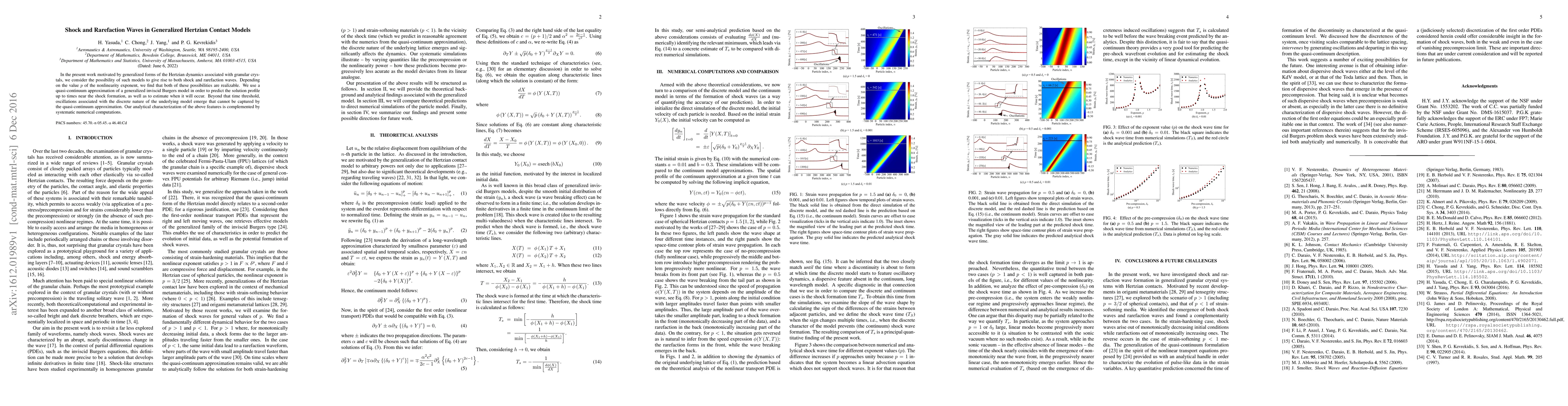 In the present work motivated by generalized forms of the Hertzian dynamics associated with granular crystals, we consider the possibility of such models to give rise to both shock and rarefaction waves. Depending on the value $p$ of the nonlinearity exponent, we find that both of these possibilities are realizable. We use a quasi-continuum approximation of a generalized inviscid Burgers model in order to predict the solution profile up to times near the shock formation, as well as to estimate when it will occur. Beyond that time threshold, oscillations associated with the discrete nature of the underlying model emerge that cannot be captured by the quasi-continuum approximation. Our analytical characterization of the above features is complemented by systematic numerical computations.