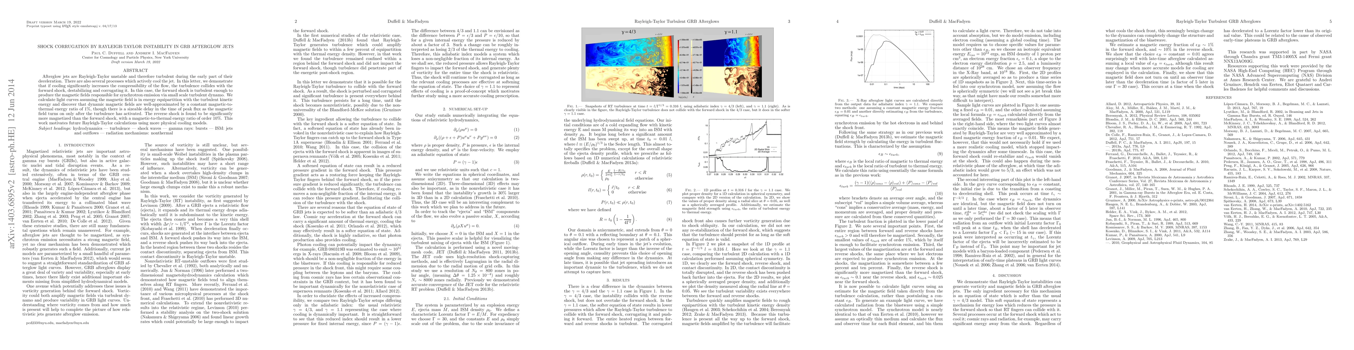 Afterglow jets are Rayleigh-Taylor unstable and therefore turbulent during the early part of their deceleration. There are also several processes which actively cool the jet. In this letter, we demonstrate that if cooling significantly increases the compressibility of the flow, the turbulence collides with the forward shock, destabilizing and corrugating it. In this case, the forward shock is turbulent enough to produce the magnetic fields responsible for synchrotron emission via small scale turbulent dynamo. We calculate light curves assuming the magnetic field is in energy equipartition with the turbulent kinetic energy and discover that dynamic magnetic fields are well-approximated by a constant magnetic-to- thermal energy ratio of 1%, though there is a sizeable delay in the time of peak flux as the magnetic field turns on only after the turbulence has activated. The reverse shock is found to be significantly more magnetized than the forward shock, with a magnetic-to-thermal energy ratio of order 10%. This work motivates future Rayleigh-Taylor calculations using more physical cooling models.