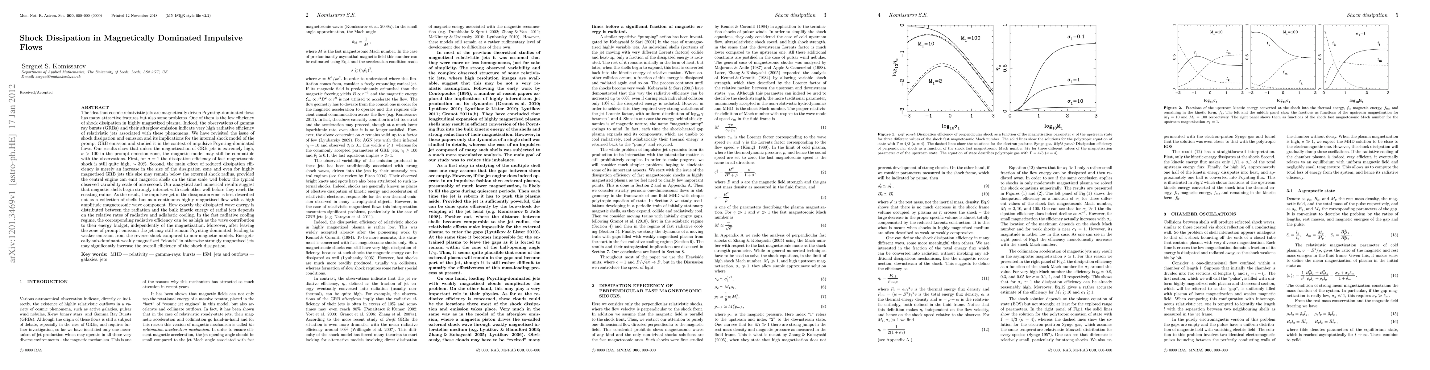 We have revisited the issue of shock dissipation and emission and its implications for the internal shock model of the prompt GRB emission and studied it in the context of impulsive Poynting-dominated flows. Our results show that unless the magnetization of GRB jets is extremely high, \sigma > 100 in the prompt emission zone, the magnetic model may still be compatible with the observations. The main effect of reduced dissipation efficiency is merely an increase in the size of the dissipation zone and even for highly magnetised GRB jets this size may remain below the external shock radius, provided the central engine can emit magnetic shells on the time scale well below the typical observed variability scale of one second. Our analytical and numerical results suggest that magnetic shells begin strongly interact with each other well before they reach the coasting radius. As the result, the impulsive jet in the dissipation zone is best described not as a collection of shells but as a continuous highly magnetised flow with a high amplitude magnetosonic wave component. How exactly the dissipated wave energy is distributed between the radiation and the bulk kinetic energy of radial jets depends on the relative rates of radiative and adiabatic cooling. In the fast radiative cooling regime, the corresponding radiative efficiency can be as high as the wave contribution to their energy budget, independently of the magnetization. Moreover, after leaving the zone of prompt emission the jet may still remain Poynting-dominated, leading to weaker emission from the reverse shock compared to non-magnetic models.