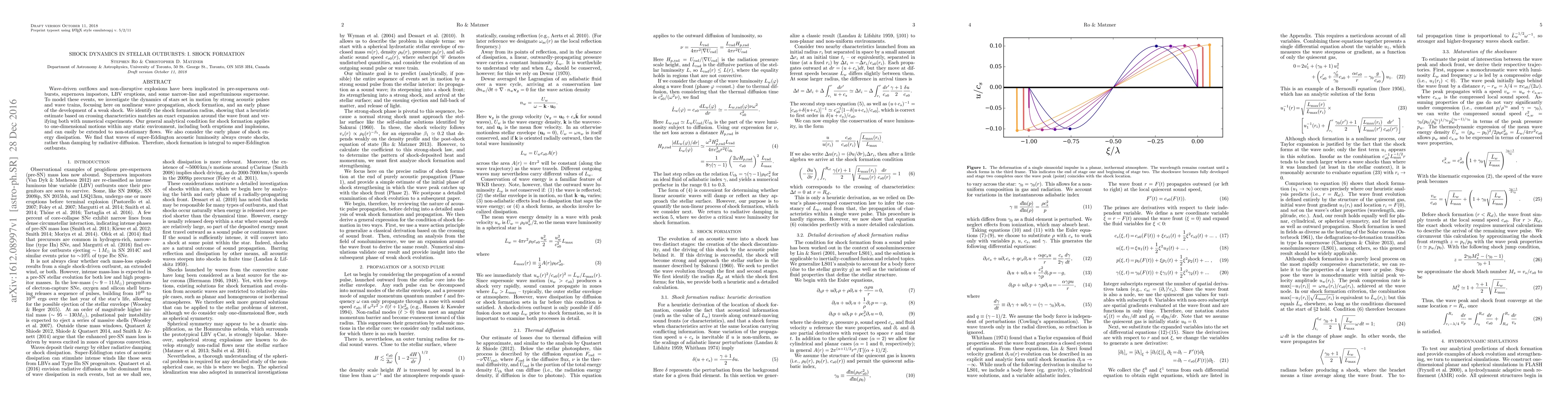Wave-driven outflows and non-disruptive explosions have been implicated in pre-supernova outbursts, supernova impostors, LBV eruptions, and some narrow-line and superluminous supernovae. To model these events, we investigate the dynamics of stars set in motion by strong acoustic pulses and wave trains, focusing here on nonlinear wave propagation, shock formation, and an early phase of the development of a weak shock. We identify the shock formation radius, showing that a heuristic estimate based on crossing characteristics matches an exact expansion around the wave front and verifying both with numerical experiments. Our general analytical condition for shock formation applies to one-dimensional motions within any static environment, including both eruptions and implosions, and can easily be extended to non-stationary flows. We also consider the early phase of shock energy dissipation. We find that waves of super-Eddington acoustic luminosity always create shocks, rather than damping by radiative diffusion. Therefore, shock formation is integral to super-Eddington outbursts.