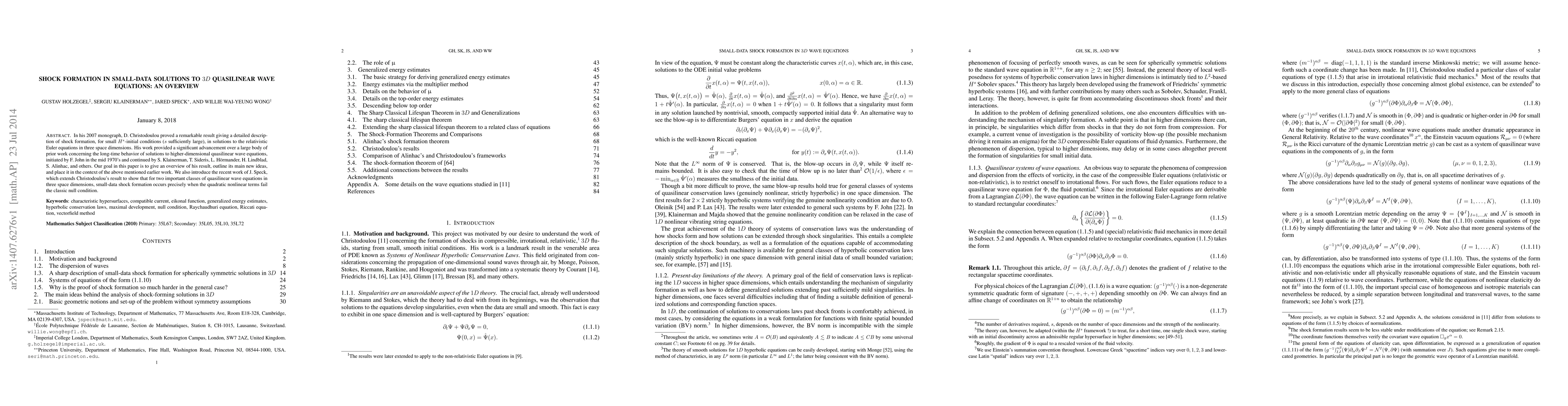 In his 2007 monograph, D. Christodoulou proved a remarkable result giving a detailed description of shock formation, for small $H^s$-initial conditions ($s$ sufficiently large), in solutions to the relativistic Euler equations in three space dimensions. His work provided a significant advancement over a large body of prior work concerning the long-time behavior of solutions to higher-dimensional quasilinear wave equations, initiated by F. John in the mid 1970's and continued by S. Klainerman, T. Sideris, L. H\"ormander, H. Lindblad, S. Alinhac, and others. Our goal in this paper is to give an overview of his result, outline its main new ideas, and place it in the context of the above mentioned earlier work. We also introduce the recent work of J. Speck, which extends Christodoulou's result to show that for two important classes of quasilinear wave equations in three space dimensions, small-data shock formation occurs precisely when the quadratic nonlinear terms fail the classic null condition.