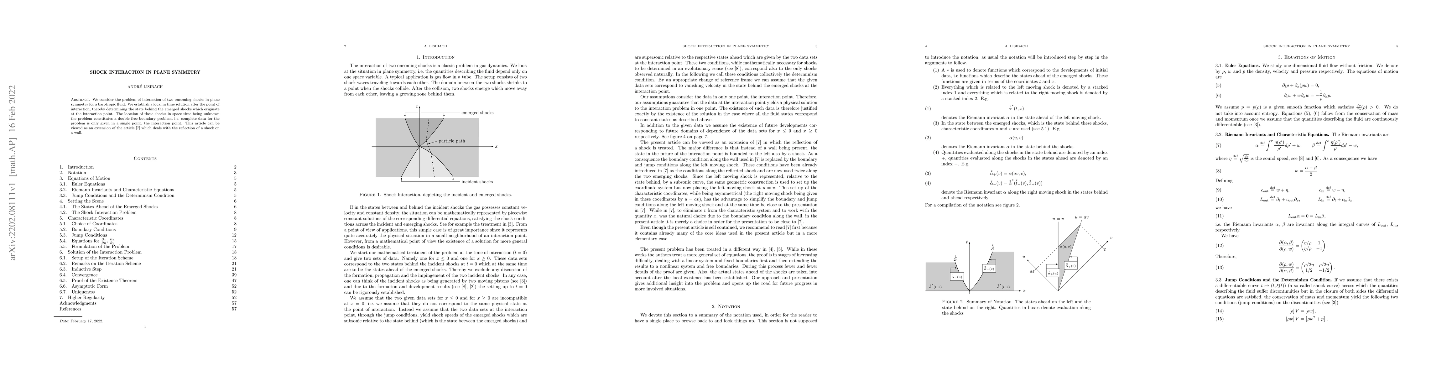 Researchers develop a solution to study the interaction of two oncoming shocks in plane symmetry for a barotropic fluid, determining the state behind emerged shocks after their point of interaction.