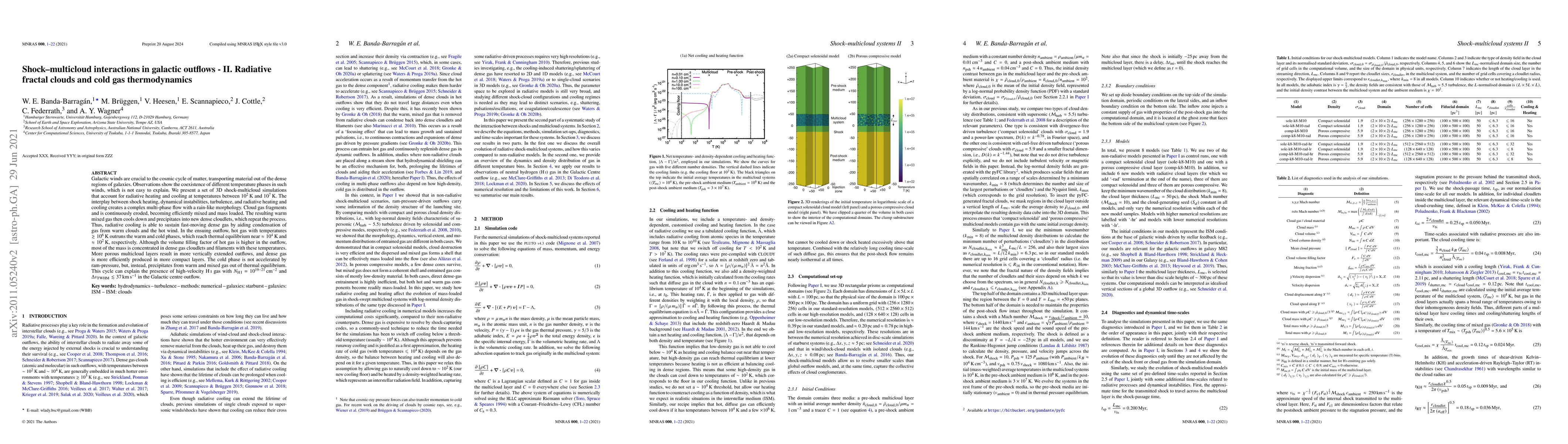 This paper uses 3D shock-multicloud simulations to explore the complex interactions in galactic outflows, showing how radiative cooling sustains dense gas through a cycle of heating, erosion, mixing, and condensation. The simulations reveal that while hot gas dominates the outflow volume, most mass resides in cooler, dense cloudlets, explaining the observed high-velocity H\,{\sc i} gas in the Galactic centre outflow.