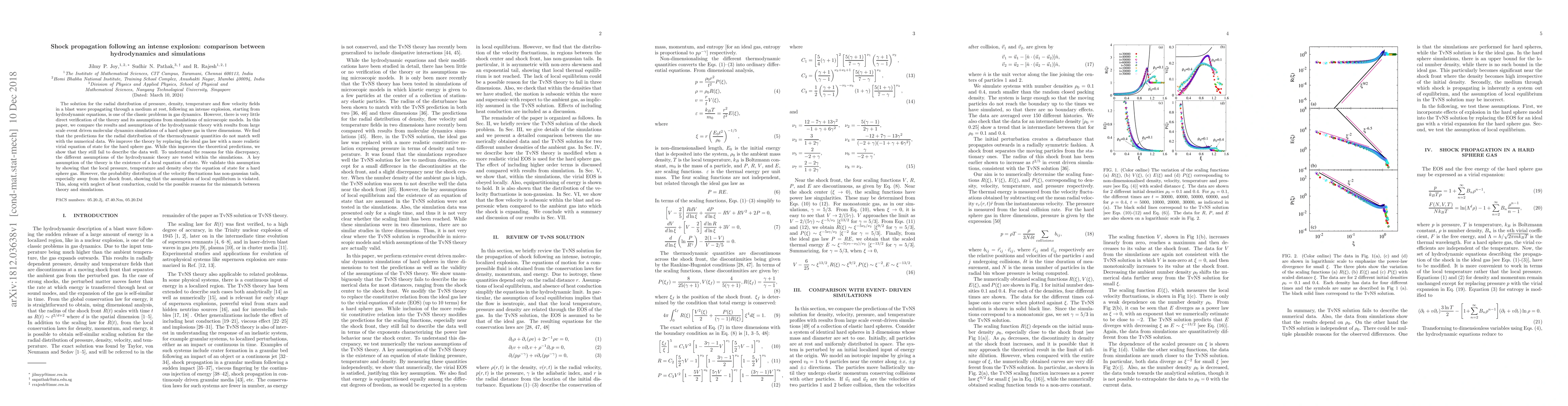 This paper compares hydrodynamic theory predictions for blast wave propagation with molecular dynamics simulations of a hard sphere gas, finding significant discrepancies. Improved theory using a virial equation of state still fails to match simulation data, highlighting issues with local equilibrium assumptions and neglect of heat conduction.