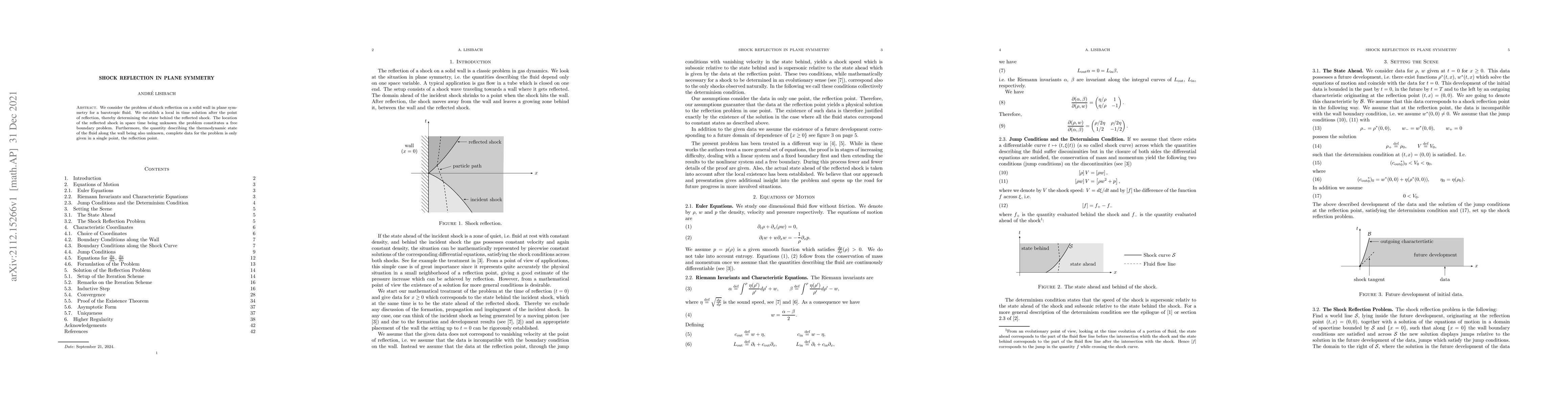 We consider the problem of shock reflection on a solid wall in plane symmetry for a barotropic fluid. We establish a local in time solution after the point of reflection, thereby determining the state behind the reflected shock. The location of the reflected shock in space time being unknown the problem constitutes a free boundary problem. Furthermore, the quantity describing the thermodynamic state of the fluid along the wall being also unknown, complete data for the problem is only given in a single point, the reflection point.