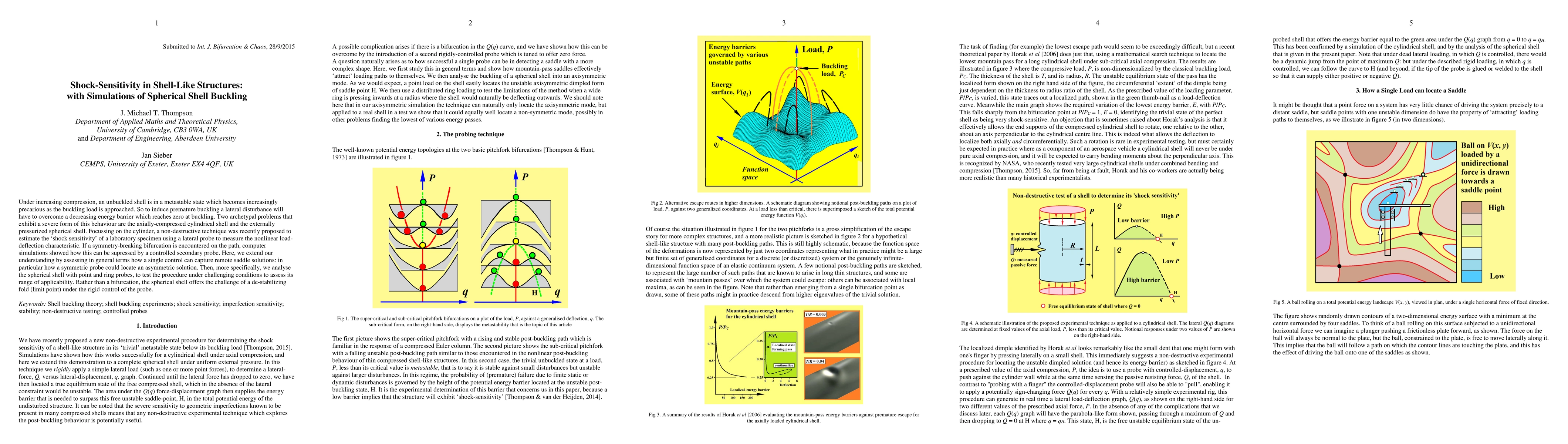 Under increasing compression, an unbuckled shell is in a metastable state which becomes increasingly precarious as the buckling load is approached. So to induce premature buckling a lateral disturbance will have to overcome a decreasing energy barrier which reaches zero at buckling. Two archetypal problems that exhibit a severe form of this behaviour are the axially-compressed cylindrical shell and the externally pressurized spherical shell. Focussing on the cylinder, a non-destructive technique was recently proposed to estimate the 'shock sensitivity' of a laboratory specimen using a lateral probe to measure the nonlinear load-deflection characteristic. If a symmetry-breaking bifurcation is encountered on the path, computer simulations showed how this can be suppressed by a controlled secondary probe. Here, we extend our understanding by assessing in general terms how a single control can capture remote saddle solutions: in particular how a symmetric probe could locate an asymmetric solution. Then, more specifically, we analyse the spherical shell with point and ring probes, to test the procedure under challenging conditions to assess its range of applicability. Rather than a bifurcation, the spherical shell offers the challenge of a de-stabilizing fold (limit point) under the rigid control of the probe.