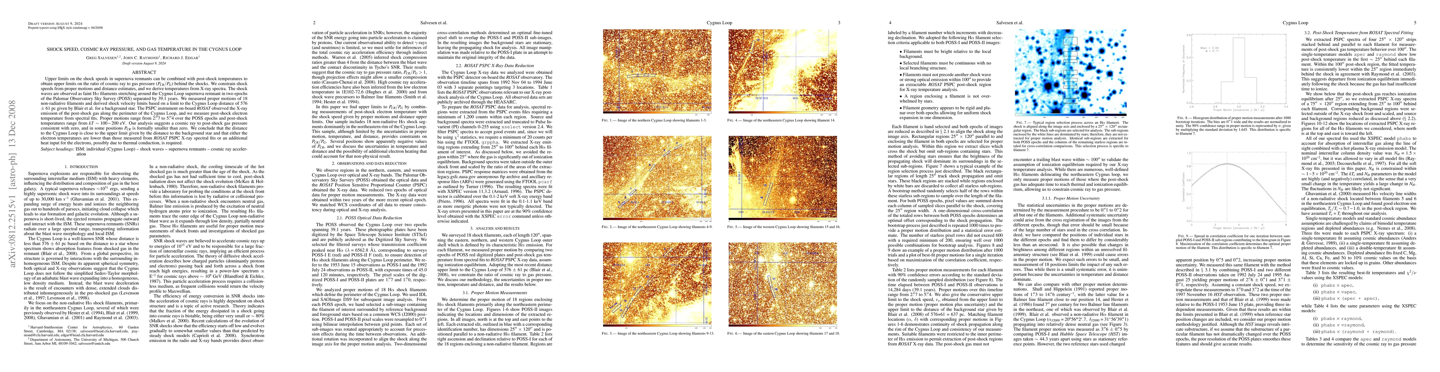 This study combines shock speed measurements from H-alpha filament proper motions and X-ray temperature data to infer the cosmic ray to gas pressure ratio in the Cygnus Loop supernova remnant. The findings suggest that the cosmic ray pressure is negligible, indicating potential additional heat sources for the post-shock gas.