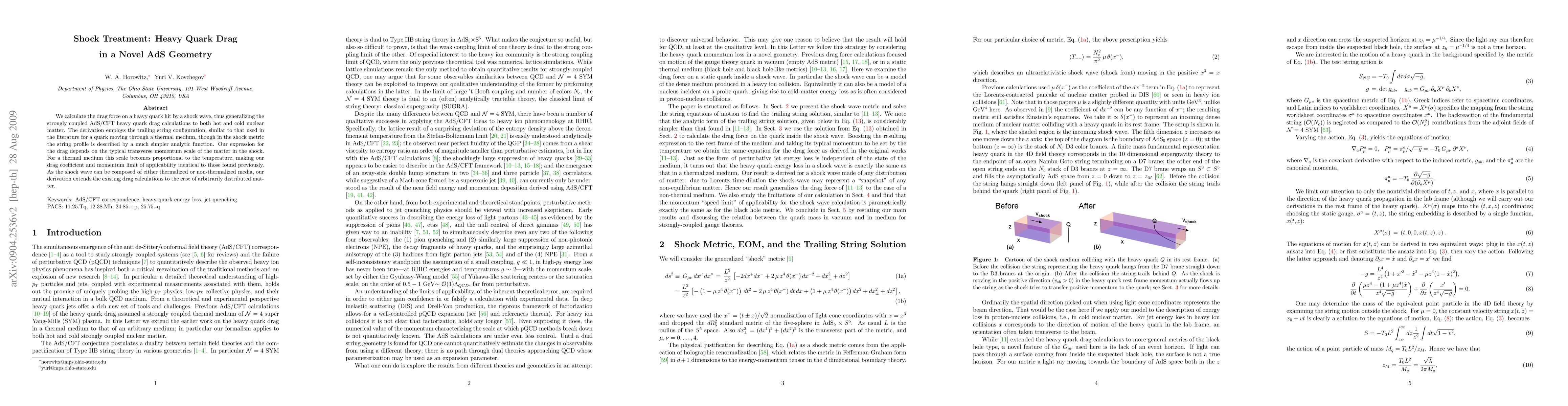 This paper generalizes heavy quark drag calculations in strongly coupled AdS/CFT correspondence to both hot and cold nuclear matter, employing a trailing string configuration in a novel AdS geometry. The drag force expression depends on the transverse momentum scale, extending applicability to both thermalized and non-thermalized shock waves.