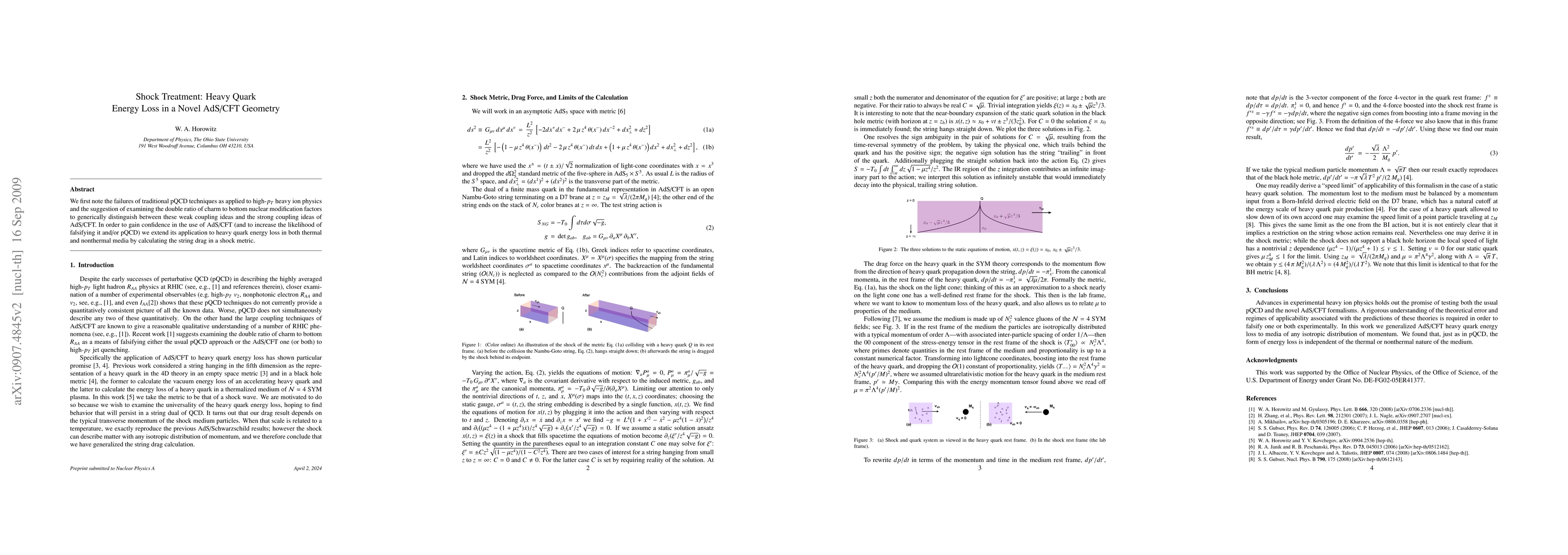 We first note the failures of traditional pQCD techniques as applied to high-pT heavy ion physics and the suggestion of examining the double ratio of charm to bottom nuclear modification factors to generically distinguish between these weak coupling ideas and the strong coupling ideas of AdS/CFT. In order to gain confidence in the use of AdS/CFT (and to increase the likelihood of falsifying it and/or pQCD) we extend its application to heavy quark energy loss in both thermal and nonthermal media by calculating the string drag in a shock metric.