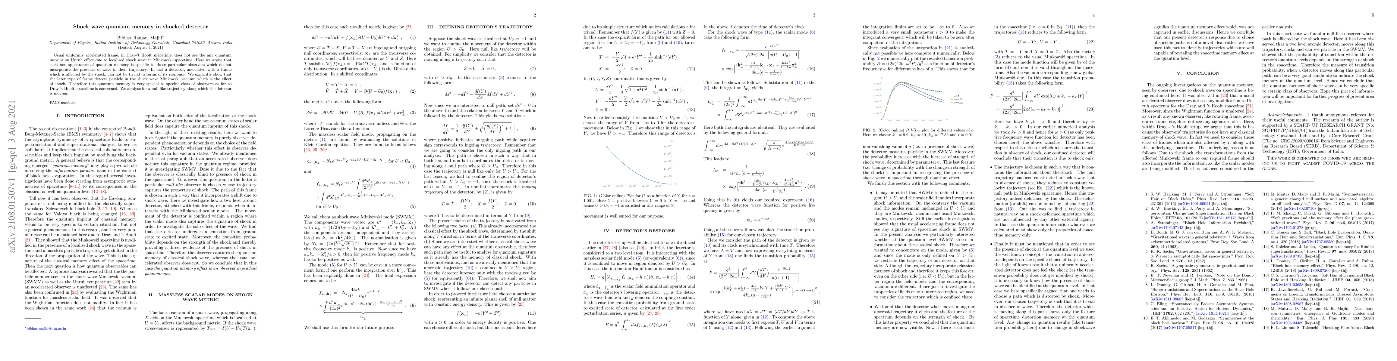 Usual uniformly accelerated frame, in Dray-'t Hooft spacetime, does not see the any quantum imprint on Unruh effect due to localised shock wave in Minkowski spacetime. Here we argue that such non-appearance of quantum memory is specific to those particular observers which do not incorporate the presence of wave in their trajectory. In fact a detector, associated with a frame which is affected by the shock, can not be trivial in terms of its response. We explicitly show that the later type of frame detects particle in the shock wave Minkowski vacuum which is the effect of shock. Therefore this quantum memory is very special to specific class of observers as far as Dray-'t Hooft spacetime is concerned. We analyse for a null like trajectory along which the detector is moving.