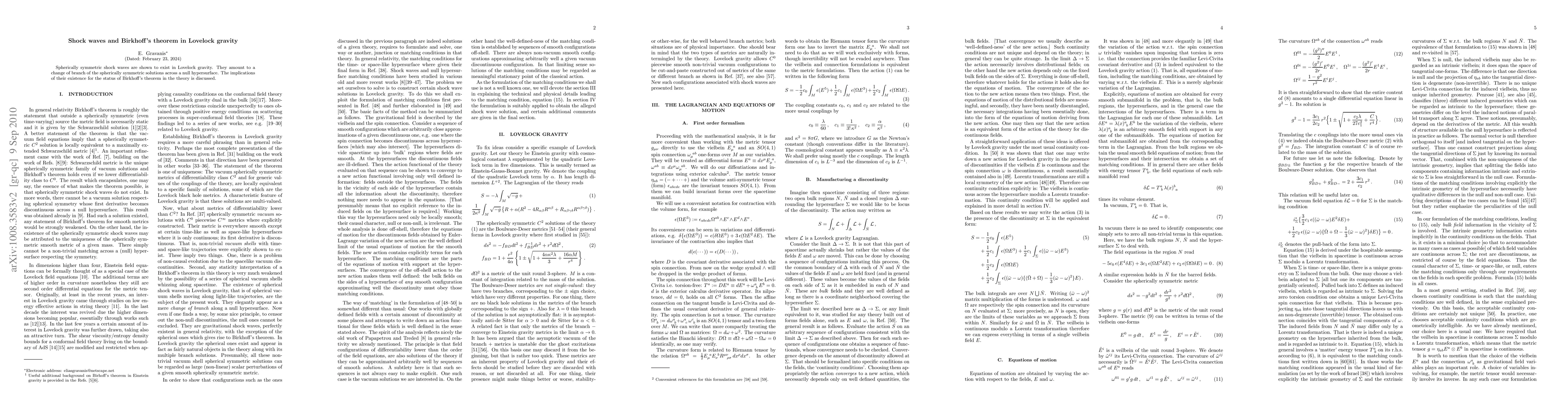 This paper demonstrates the existence of spherically symmetric shock waves in Lovelock gravity, which represent a shift in the branch of spherical solutions across a null hypersurface. The findings challenge the applicability of Birkhoff's theorem in the context of Lovelock gravity.