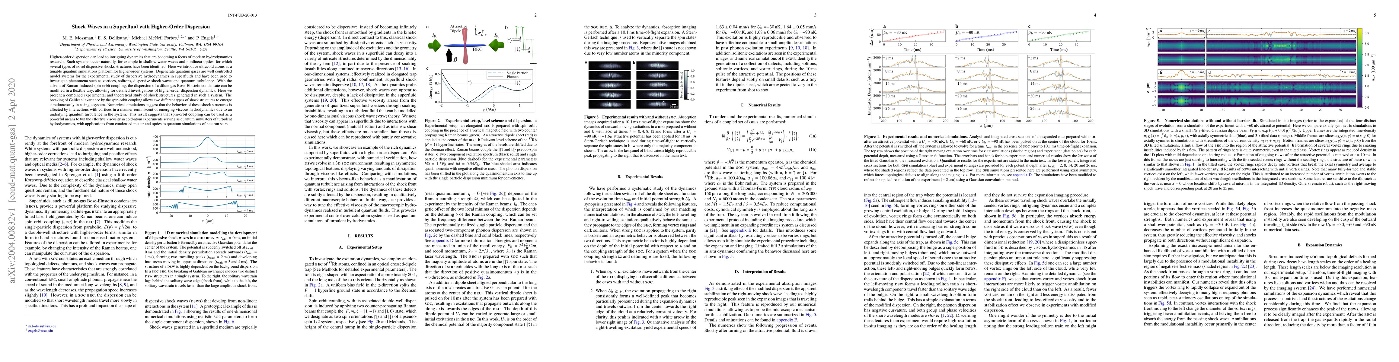 This paper investigates shock waves in superfluids with higher-order dispersion using ultracold atoms as a tunable quantum simulation platform. The study reveals two types of shock structures emerging due to spin-orbit coupling, suggesting its potential to control effective viscosity and simulate turbulent hydrodynamics.