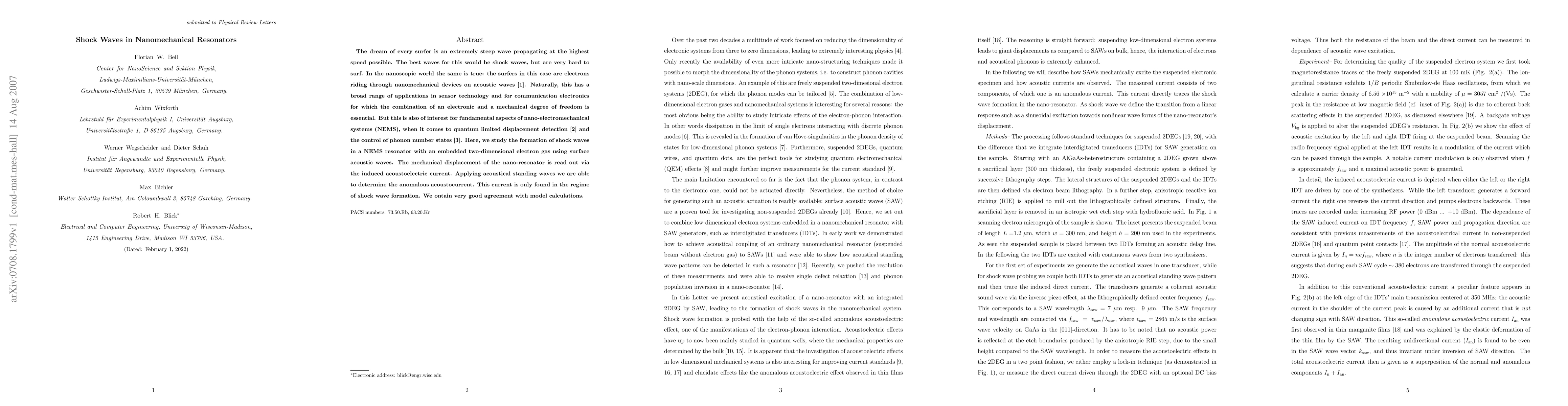 The dream of every surfer is an extremely steep wave propagating at the highest speed possible. The best waves for this would be shock waves, but are very hard to surf. In the nanoscopic world the same is true: the surfers in this case are electrons riding through nanomechanical devices on acoustic waves [1]. Naturally, this has a broad range of applications in sensor technology and for communication electronics for which the combination of an electronic and a mechanical degree of freedom is essential. But this is also of interest for fundamental aspects of nano-electromechanical systems (NEMS), when it comes to quantum limited displacement detection [2] and the control of phonon number states [3]. Here, we study the formation of shock waves in a NEMS resonator with an embedded two-dimensional electron gas using surface acoustic waves. The mechanical displacement of the nano-resonator is read out via the induced acoustoelectric current. Applying acoustical standing waves we are able to determine the anomalous acoustocurrent. This current is only found in the regime of shock wave formation. We ontain very good agreement with model calculations.
