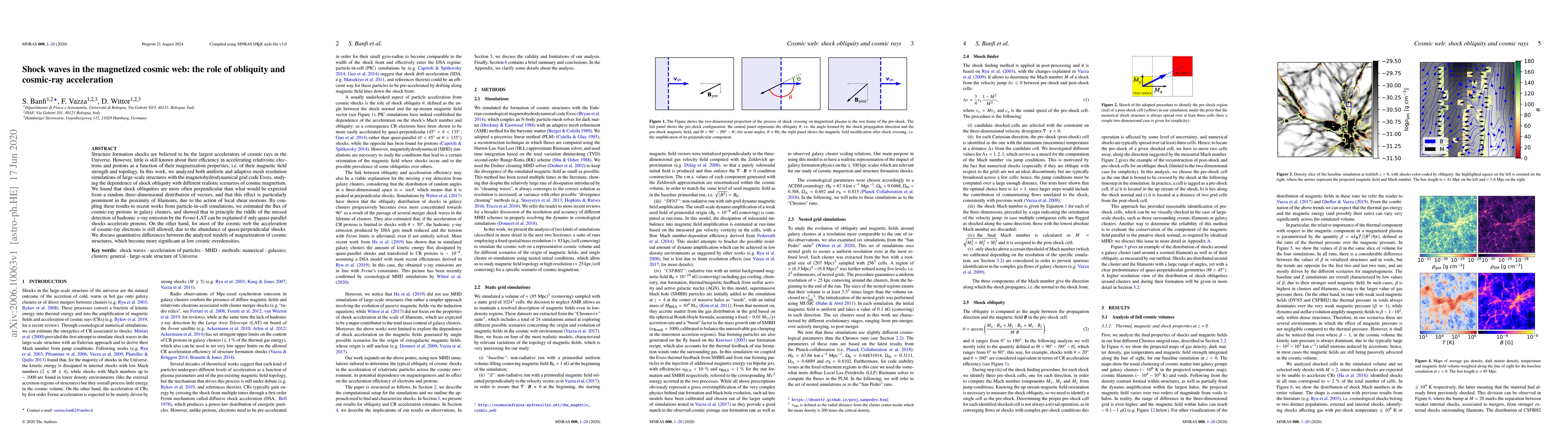 Structure formation shocks are believed to be the largest accelerators of cosmic rays in the Universe. However, little is still known about their efficiency in accelerating relativistic electrons and protons as a function of their magnetization properties, i.e. of their magnetic field strength and topology. In this work, we analyzed both uniform and adaptive mesh resolution simulations of large-scale structures with the magnetohydrodynamical grid code Enzo, studying the dependence of shock obliquity with different realistic scenarios of cosmic magnetism. We found that shock obliquities are more often perpendicular than what would be expected from a random three-dimensional distribution of vectors, and that this effect is particularly prominent in the proximity of filaments, due to the action of local shear motions. By coupling these results to recent works from particle-in-cell simulations, we estimated the flux of cosmic-ray protons in galaxy clusters, and showed that in principle the riddle of the missed detection of hadronic gamma-ray emission by the Fermi-LAT can be explained if only quasi-parallel shocks accelerate protons. On the other hand, for most of the cosmic web the acceleration of cosmic-ray electrons is still allowed, due to the abundance of quasi-perpendicular shocks. We discuss quantitative differences between the analyzed models of magnetization of cosmic structures, which become more significant at low cosmic overdensities.