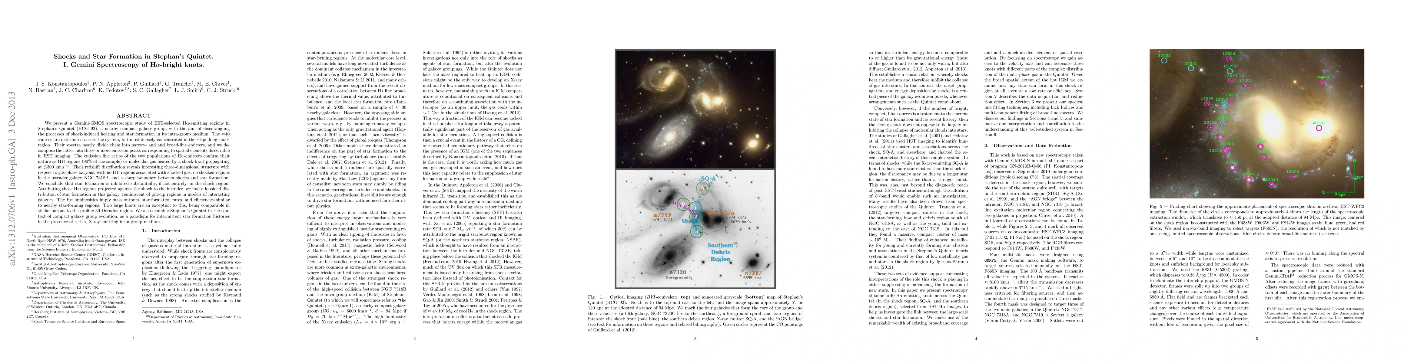 This Gemini-GMOS spectroscopic study of Hα-emitting regions in Stephan's Quintet reveals a complex interplay between shock-induced heating and star formation, with star formation largely inhibited in the shock region. The study identifies H II regions and shocked molecular gas, showing a distinct boundary between shocks and star formation.