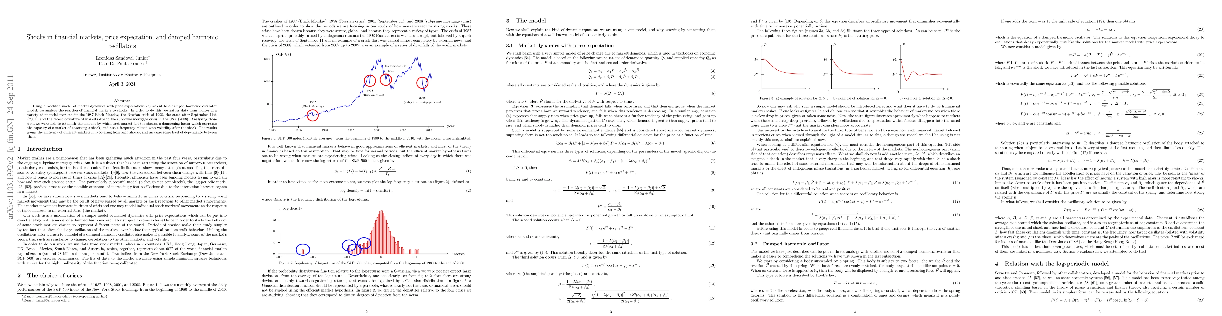 This paper employs a modified damped harmonic oscillator model to analyze financial markets' reactions to major shocks, finding varying absorption capacities and post-shock volatility frequencies among different markets. It concludes that financial markets are now more interconnected than in the past, evidenced by increased correlation between indices.