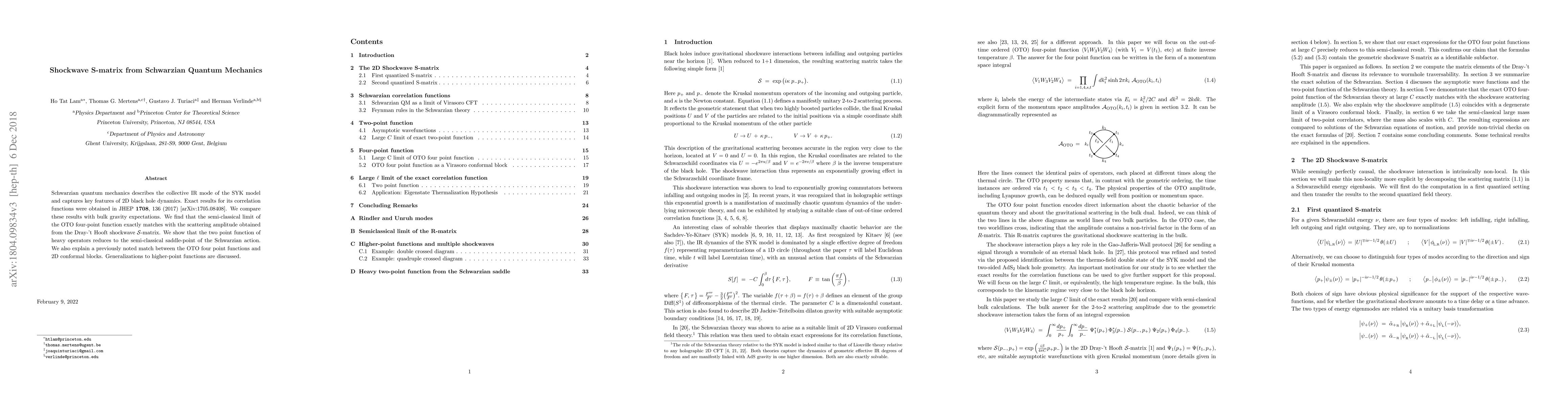 This paper investigates the Schwarzian quantum mechanics underlying the SYK model and its correlation functions, comparing them with bulk gravity expectations. It finds that the semi-classical limit of the out-of-time-order four-point function matches the shockwave S-matrix from Dray-'t Hooft gravity, and discusses generalizations and applications.