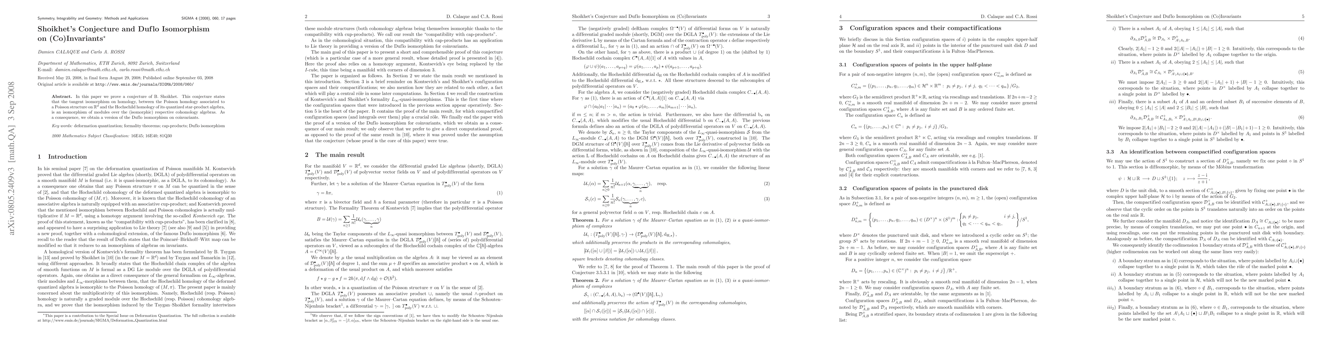This paper proves Shoikhet's conjecture regarding the tangent isomorphism on homology between Poisson homology and Hochschild homology, establishing it as an isomorphism of modules over respective cohomology algebras, and deriving a version of the Duflo isomorphism on coinvariants.