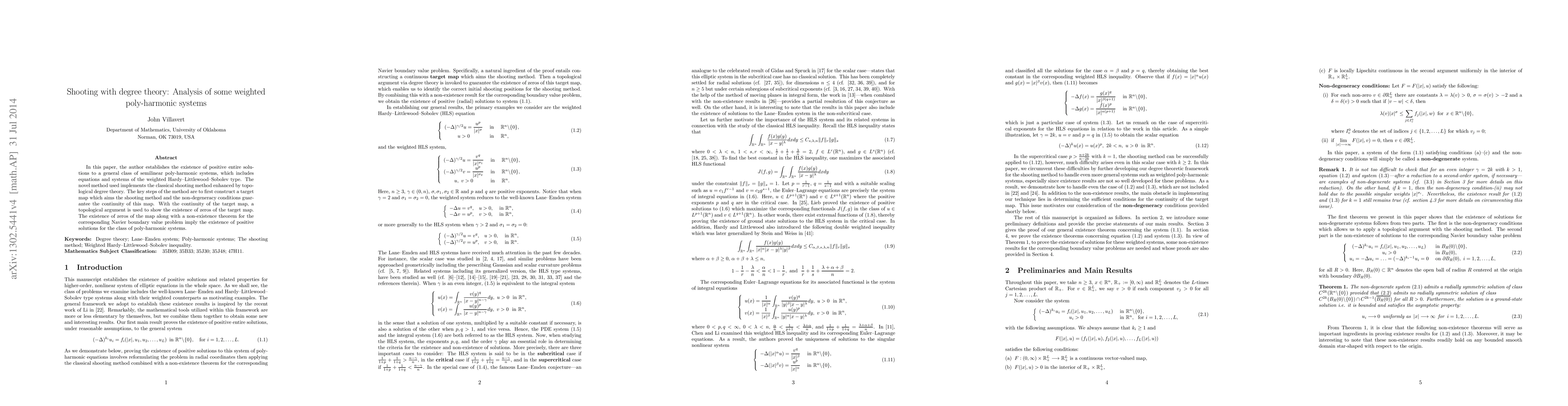 In this paper, the author establishes the existence of positive entire solutions to a general class of semilinear poly-harmonic systems, which includes equations and systems of the weighted Hardy--Littlewood--Sobolev type. The novel method used implements the classical shooting method enhanced by topological degree theory. The key steps of the method are to first construct a target map which aims the shooting method and the non-degeneracy conditions guarantee the continuity of this map. With the continuity of the target map, a topological argument is used to show the existence of zeros of the target map. The existence of zeros of the map along with a non-existence theorem for the corresponding Navier boundary value problem imply the existence of positive solutions for the class of poly-harmonic systems.