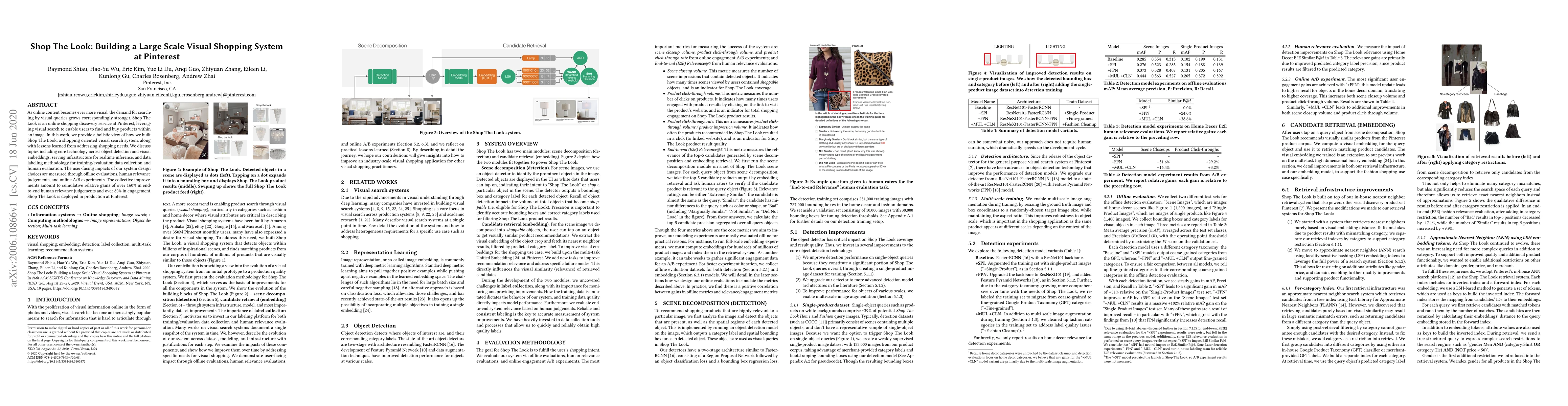 This paper details the development of Pinterest's Shop The Look, a visual shopping system that uses visual search to help users find and purchase products within images. The authors describe the technology, infrastructure, and data methodologies used, reporting significant improvements in relevance and user engagement.