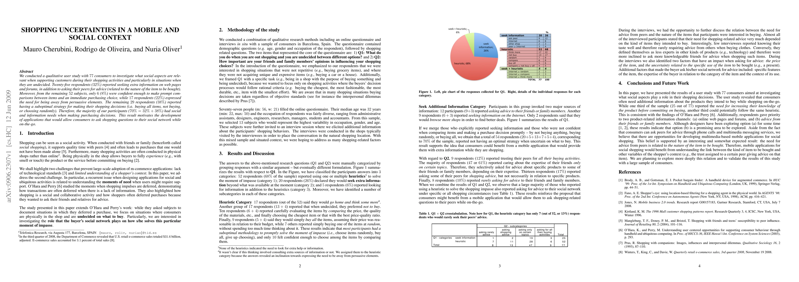We conducted a qualitative user study with 77 consumers to investigate what social aspects are relevant when supporting customers during their shopping activities and particularly in situations when they are undecided. Twenty-five respondents (32%) reported seeking extra information on web pages and forums, in addition to asking their peers for advice (related to the nature of the item to be bought). Moreover, from the remaining 52 subjects, only 6 (8%) were confident enough to make prompt comparisons between items and an immediate purchasing choice, while 17 respondents (22%) expressed the need for being away from persuasive elements. The remaining 29 respondents (38%) reported having a suboptimal strategy for making their shopping decisions (i.e. buying all items, not buying, or choosing randomly). Therefore, the majority of our participants (70% = 32% + 38%) had social and information needs when making purchasing decisions. This result motivates the development of applications that would allow consumers to ask shopping questions to their social network while on-the-go.