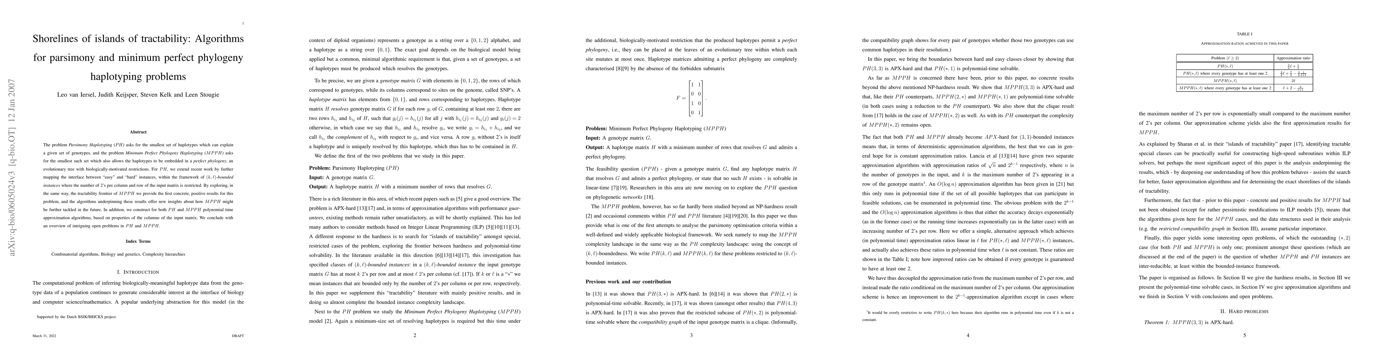 This paper explores the tractability of Parsimony Haplotyping and Minimum Perfect Phylogeny Haplotyping problems, offering new algorithms and insights into their complexity. It introduces polynomial time approximation algorithms based on input matrix properties and identifies promising directions for future research.