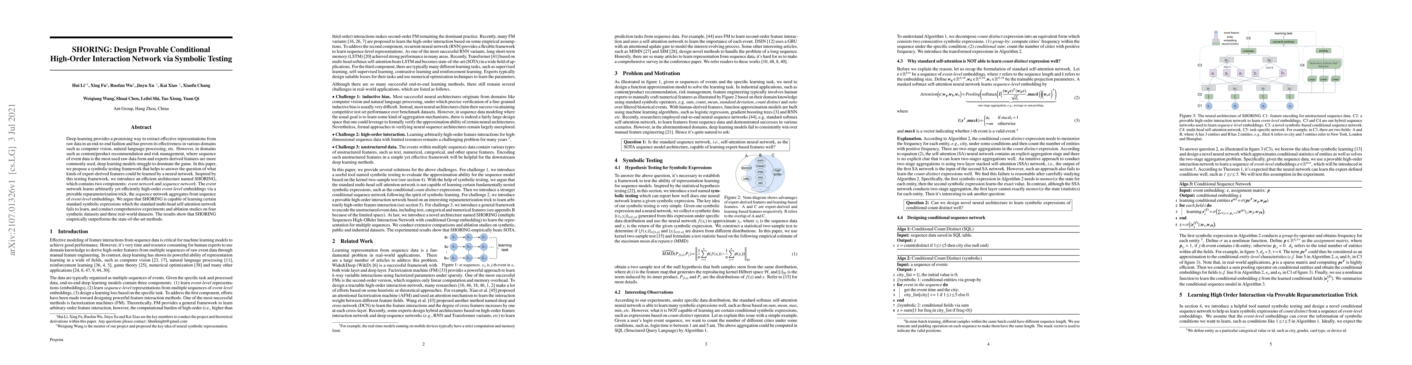 Deep learning provides a promising way to extract effective representations from raw data in an end-to-end fashion and has proven its effectiveness in various domains such as computer vision, natural language processing, etc. However, in domains such as content/product recommendation and risk management, where sequence of event data is the most used raw data form and experts derived features are more commonly used, deep learning models struggle to dominate the game. In this paper, we propose a symbolic testing framework that helps to answer the question of what kinds of expert-derived features could be learned by a neural network. Inspired by this testing framework, we introduce an efficient architecture named SHORING, which contains two components: \textit{event network} and \textit{sequence network}. The \textit{event} network learns arbitrarily yet efficiently high-order \textit{event-level} embeddings via a provable reparameterization trick, the \textit{sequence} network aggregates from sequence of \textit{event-level} embeddings. We argue that SHORING is capable of learning certain standard symbolic expressions which the standard multi-head self-attention network fails to learn, and conduct comprehensive experiments and ablation studies on four synthetic datasets and three real-world datasets. The results show that SHORING empirically outperforms the state-of-the-art methods.