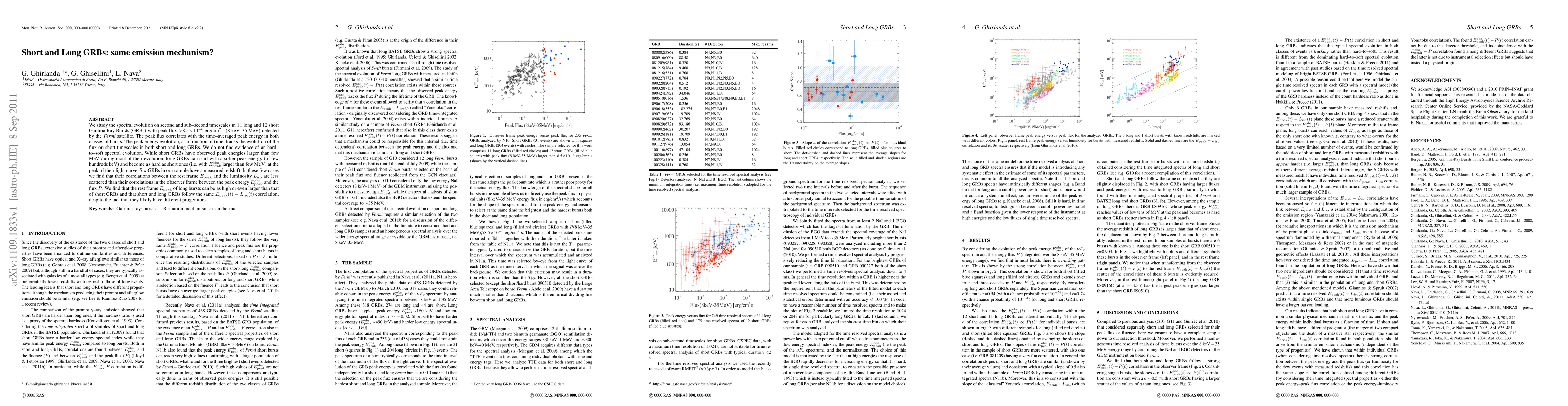 This study investigates the spectral evolution of 11 long and 12 short Gamma Ray Bursts detected by the Fermi satellite, finding similar spectral behavior in both types. Both short and long GRBs exhibit comparable peak energy evolution and flux correlation, suggesting a shared emission mechanism despite likely different progenitors.