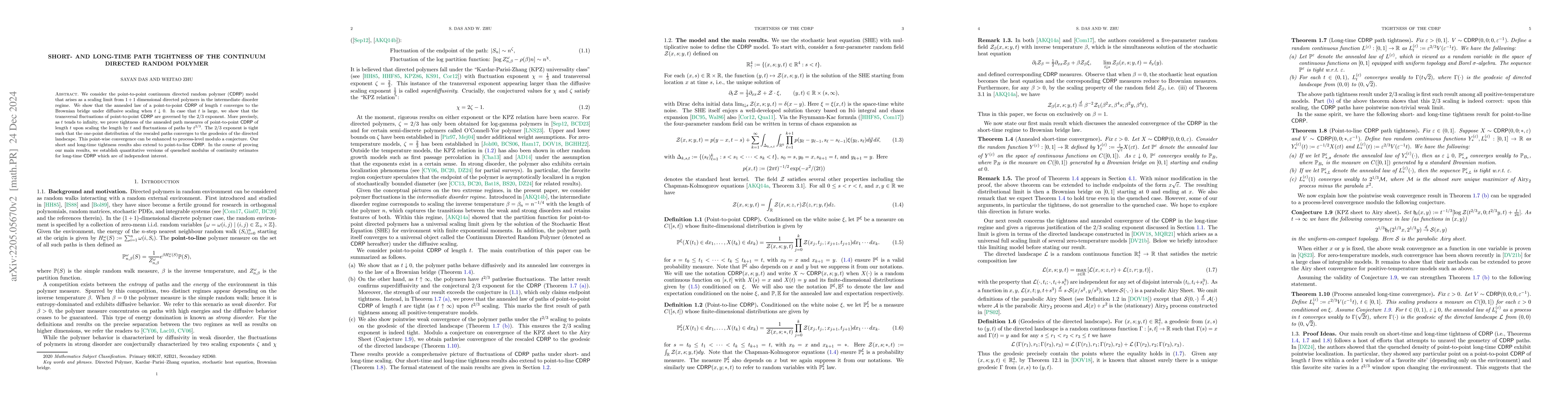 This research paper investigates the path tightness of continuum directed random polymer (CDRP) models at short and long times, showing convergence to Brownian bridge and $2/3$ exponent.