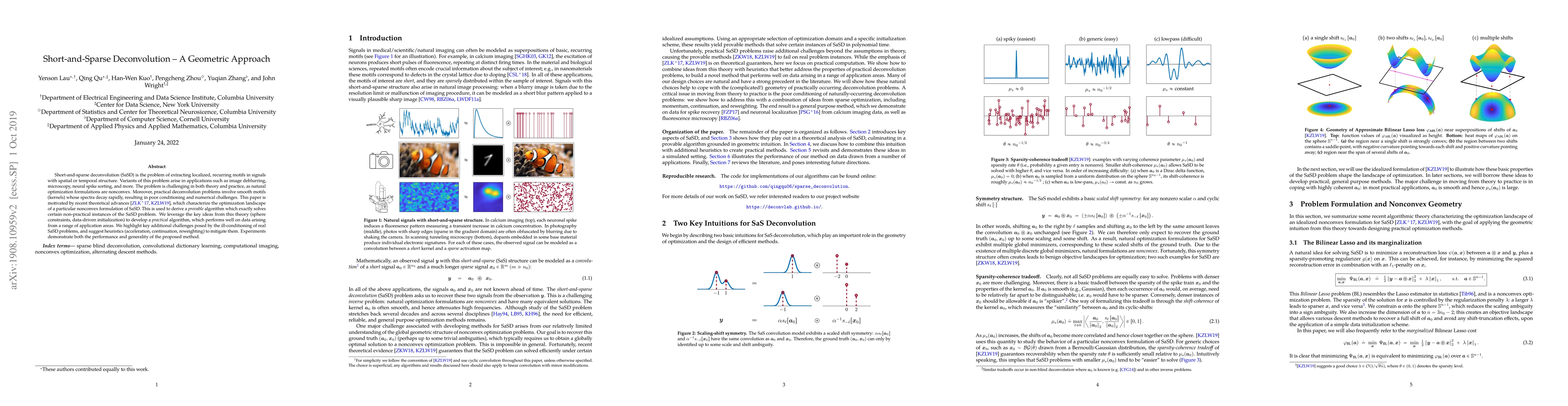 Short-and-sparse deconvolution (SaSD) is the problem of extracting localized, recurring motifs in signals with spatial or temporal structure. Variants of this problem arise in applications such as image deblurring, microscopy, neural spike sorting, and more. The problem is challenging in both theory and practice, as natural optimization formulations are nonconvex. Moreover, practical deconvolution problems involve smooth motifs (kernels) whose spectra decay rapidly, resulting in poor conditioning and numerical challenges. This paper is motivated by recent theoretical advances, which characterize the optimization landscape of a particular nonconvex formulation of SaSD. This is used to derive a $provable$ algorithm which exactly solves certain non-practical instances of the SaSD problem. We leverage the key ideas from this theory (sphere constraints, data-driven initialization) to develop a $practical$ algorithm, which performs well on data arising from a range of application areas. We highlight key additional challenges posed by the ill-conditioning of real SaSD problems, and suggest heuristics (acceleration, continuation, reweighting) to mitigate them. Experiments demonstrate both the performance and generality of the proposed method.