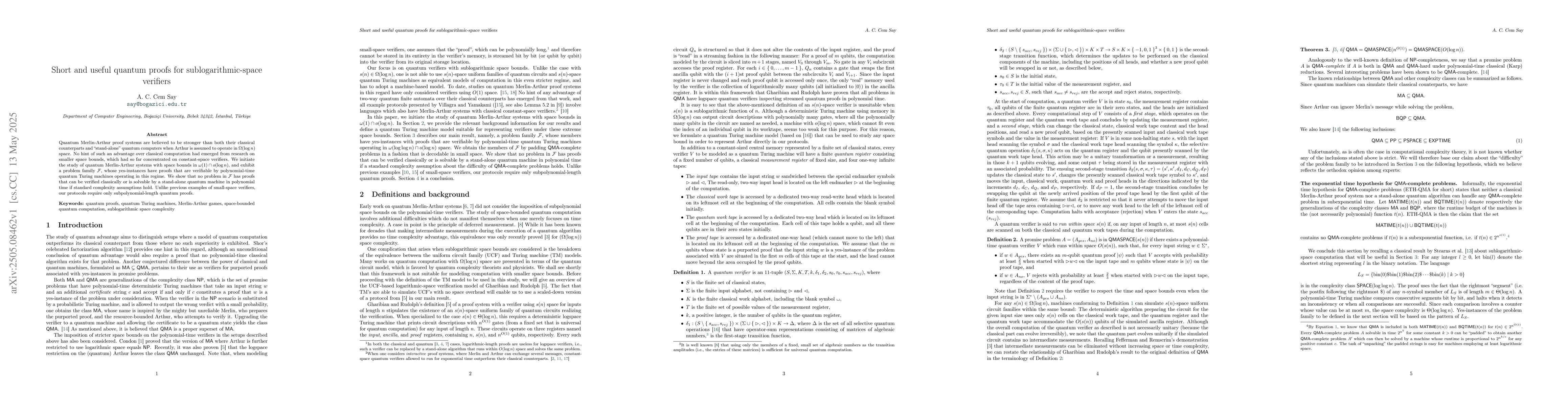 The research introduces quantum Merlin-Arthur proof systems with space bounds in $\omega(1) \cap o(\log n)$, exhibiting a problem family $\mathcal{F}$ with proofs verifiable by polynomial-time quantum Turing machines in this regime.