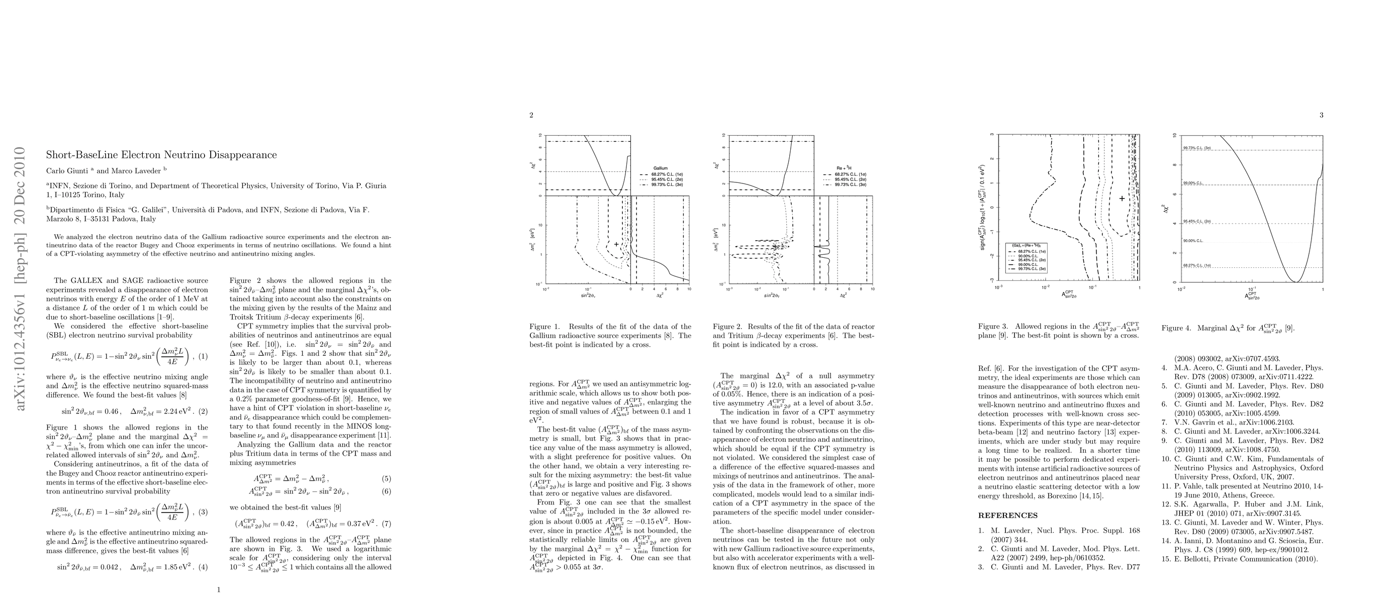 Summary: This study combines data from Gallium source and reactor experiments on neutrino oscillations, revealing a potential CPT-violating asymmetry in the effective mixing angles between electron neutrinos and antineutrinos. The findings suggest new physics beyond the standard model.