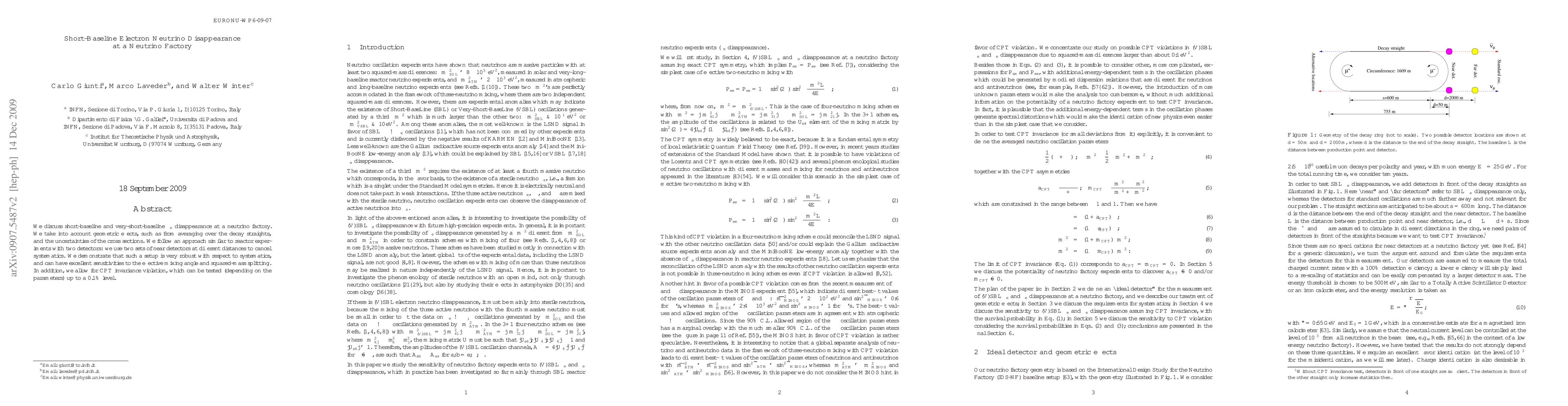 This paper investigates short-baseline electron neutrino disappearance at a neutrino factory, employing two near detectors to cancel systematics and achieve high sensitivity to mixing parameters. It also explores the potential for testing CPT invariance violation at a level of up to 0.1%.