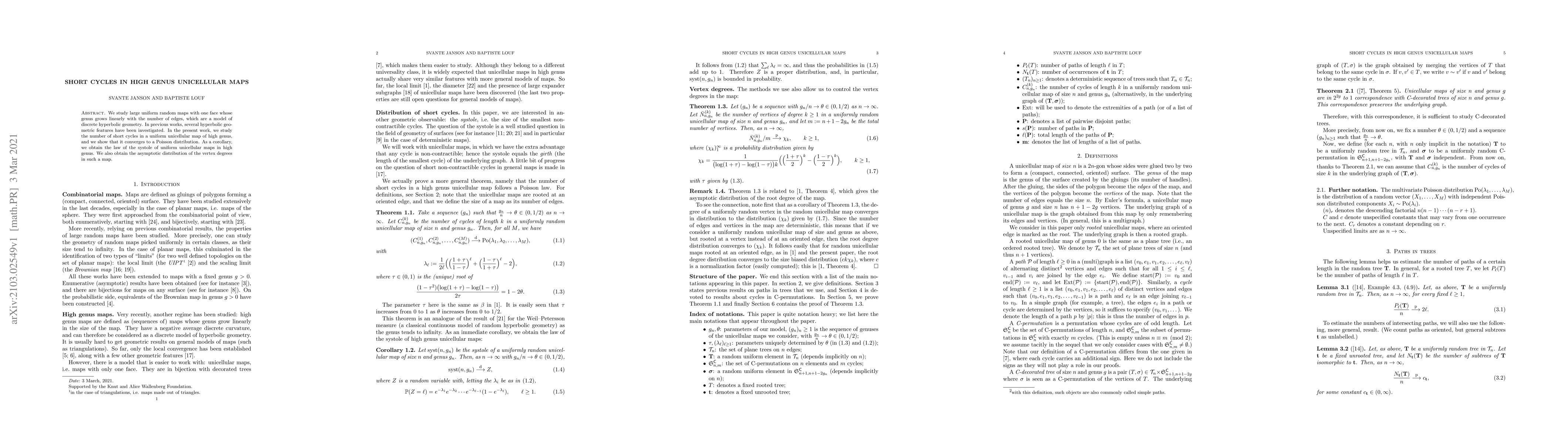 This research paper studies large random maps with high genus, finding that the number of short cycles converges to a Poisson distribution, which also applies to the law of the systole and vertex degrees.