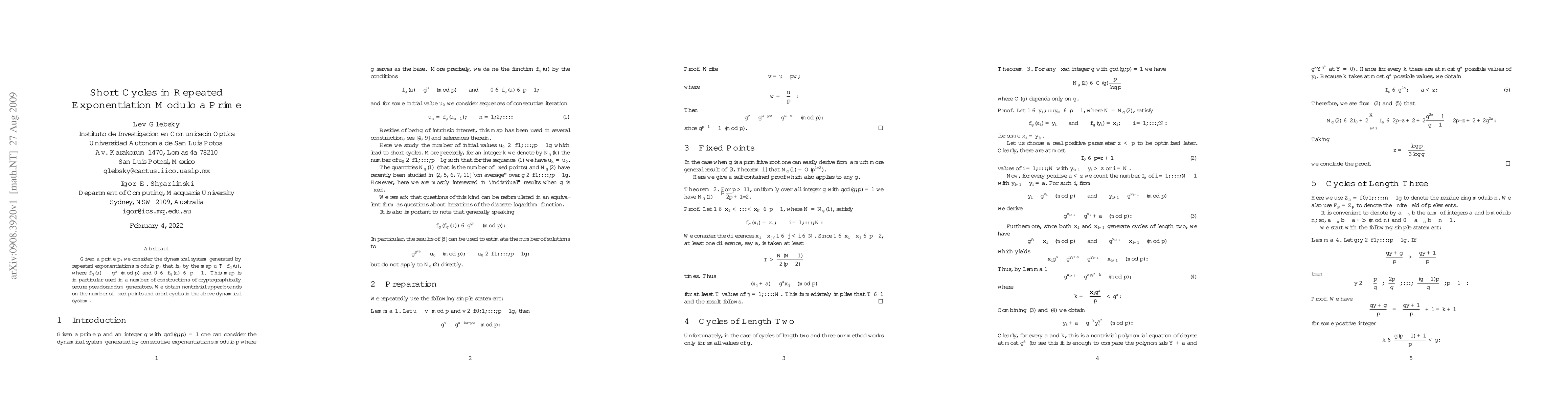This research paper establishes nontrivial upper bounds on fixed points and short cycles in a dynamical system generated by repeated exponentiations modulo a prime, with implications for cryptographically secure pseudorandom generators.