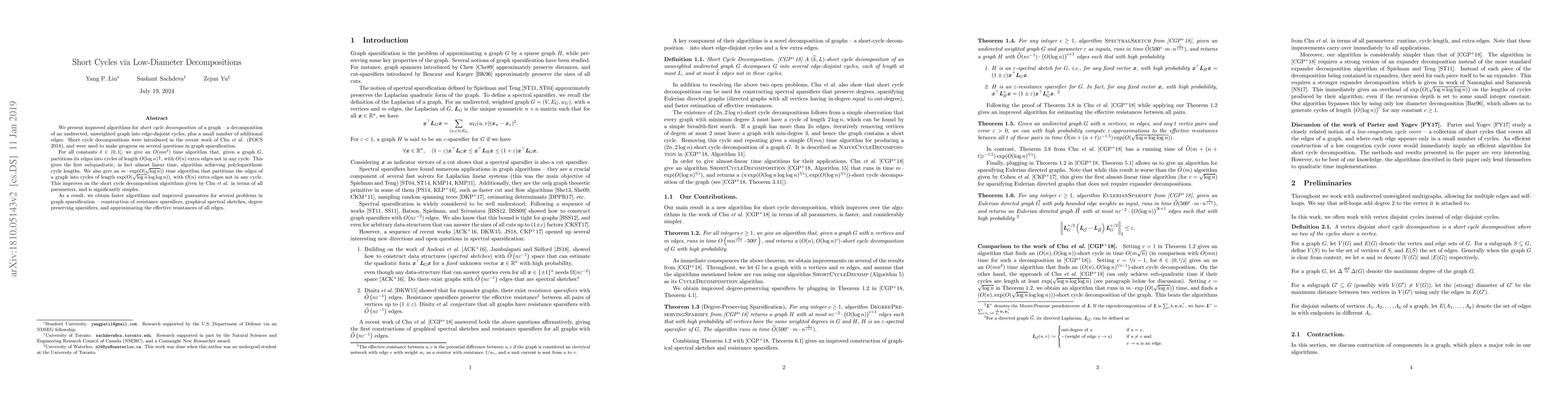 The paper presents improved algorithms for short cycle decomposition of a graph, achieving almost linear time with polylogarithmic cycle lengths and improving previous results in terms of time complexity and simplicity.
