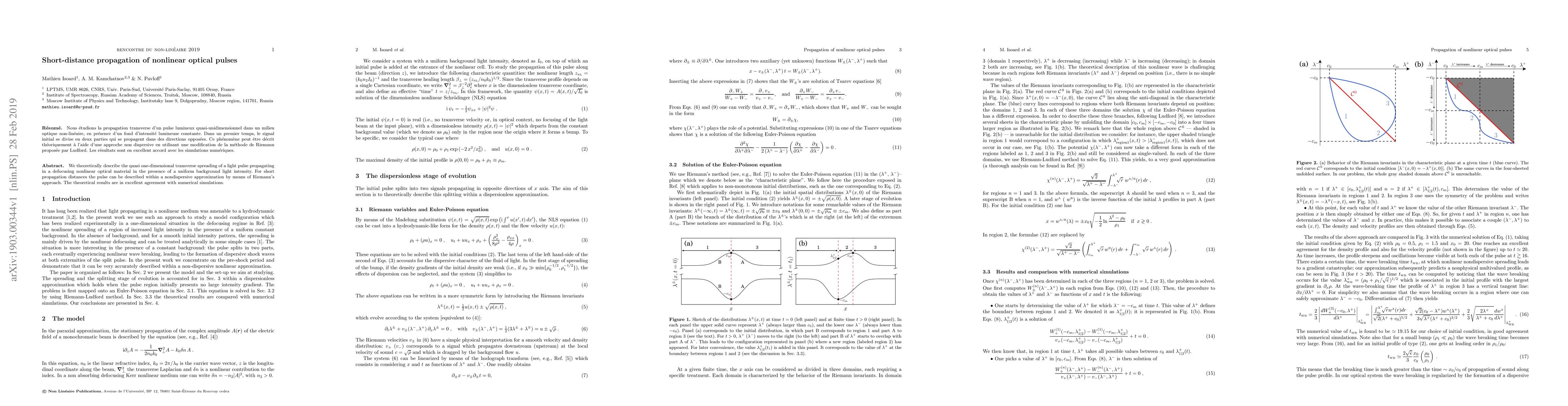 We theoretically describe the quasi one-dimensional transverse spreading of a light pulse propagating in a defocusing nonlinear optical material in the presence of a uniform background light intensity. For short propagation distances the pulse can be described within a nondispersive approximation by means of Riemann's approach. The theoretical results are in excellent agreement with numerical simulations.