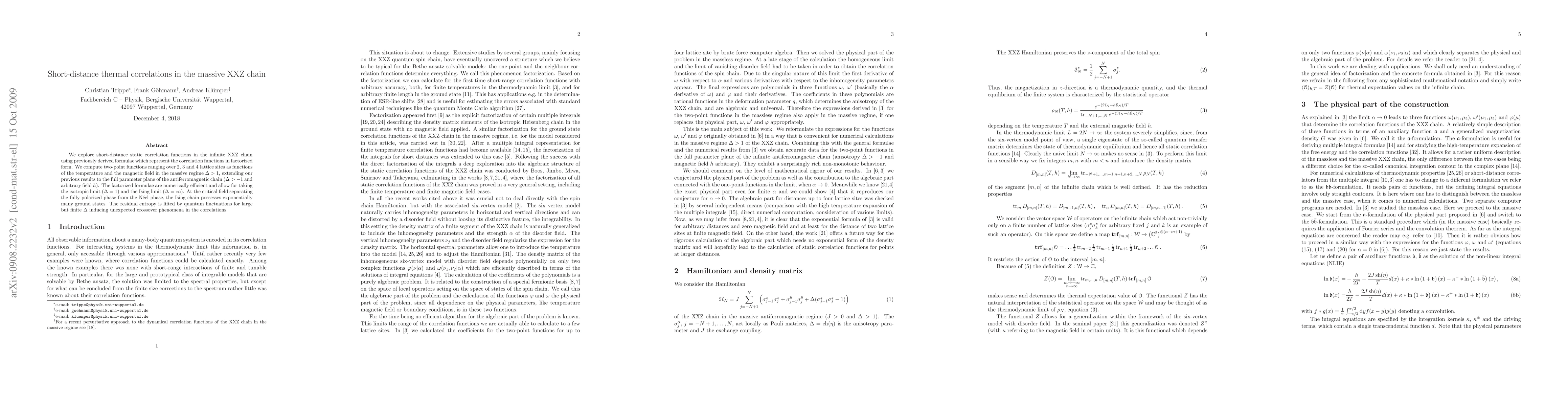 This paper investigates short-distance thermal correlations in the massive XXZ spin chain, computing two-point functions over 2 to 4 sites under varying temperature and magnetic field. It utilizes factorized formulae to efficiently explore the full parameter space, revealing unexpected crossover phenomena due to quantum fluctuations.