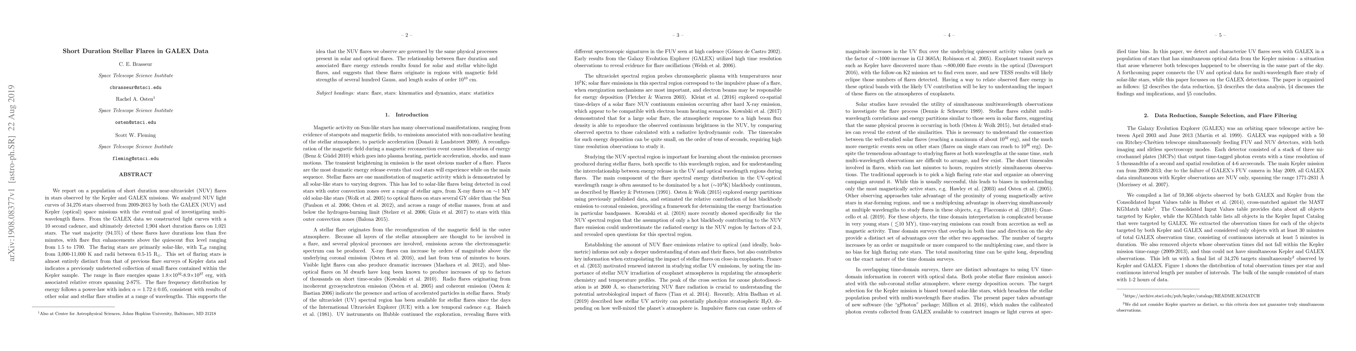 This study discovers a population of short-duration stellar flares in NUV light curves from Kepler and GALEX missions, with flare energies spanning 1.8 imes10^{32}-8.9 imes10^{37} ergs.