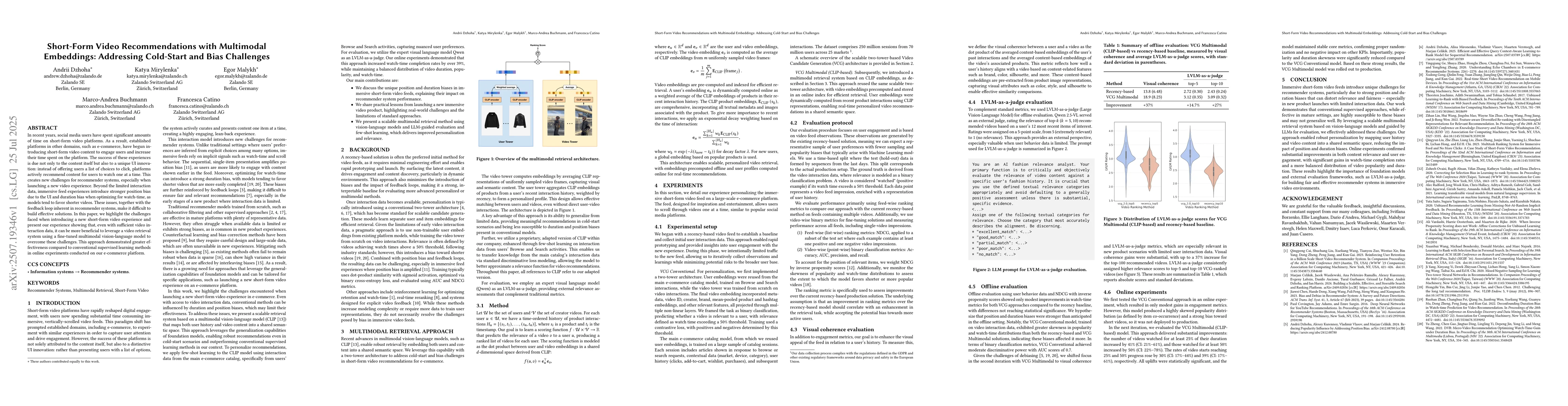 In recent years, social media users have spent significant amounts of time on short-form video platforms. As a result, established platforms in other domains, such as e-commerce, have begun introducing short-form video content to engage users and increase their time spent on the platform. The success of these experiences is due not only to the content itself but also to a unique UI innovation: instead of offering users a list of choices to click, platforms actively recommend content for users to watch one at a time. This creates new challenges for recommender systems, especially when launching a new video experience. Beyond the limited interaction data, immersive feed experiences introduce stronger position bias due to the UI and duration bias when optimizing for watch-time, as models tend to favor shorter videos. These issues, together with the feedback loop inherent in recommender systems, make it difficult to build effective solutions. In this paper, we highlight the challenges faced when introducing a new short-form video experience and present our experience showing that, even with sufficient video interaction data, it can be more beneficial to leverage a video retrieval system using a fine-tuned multimodal vision-language model to overcome these challenges. This approach demonstrated greater effectiveness compared to conventional supervised learning methods in online experiments conducted on our e-commerce platform.