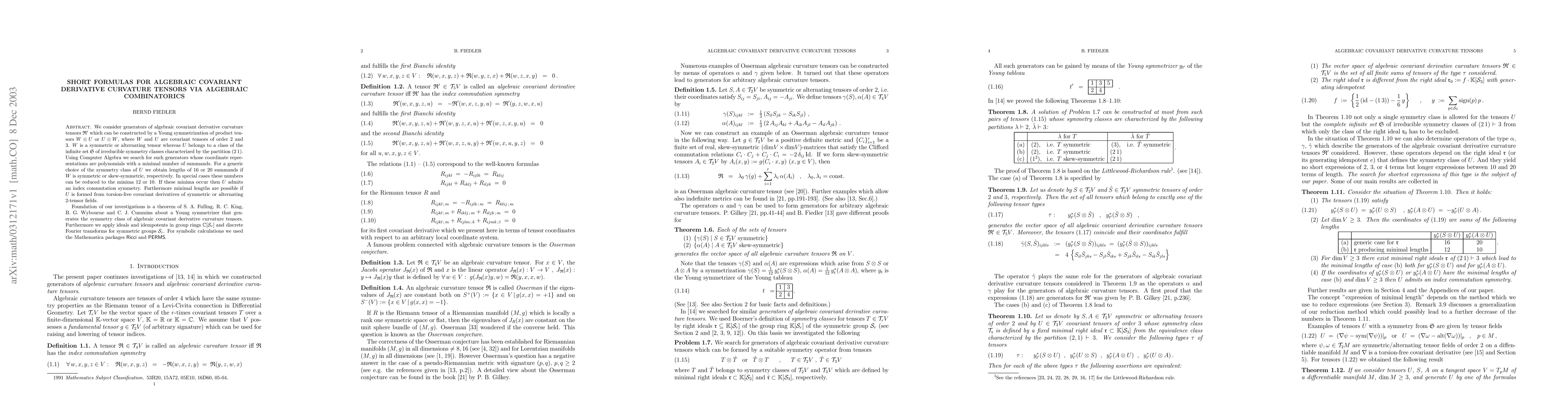 This paper explores algebraic covariant derivative curvature tensors R' generated via Young symmetrization of tensor products, focusing on minimizing the number of summands in their coordinate representations. It finds that for generic symmetry classes, the minimal lengths are 16 or 20 summands, which can be reduced to 12 or 10 under specific conditions, utilizing computer algebra and combinatorial techniques.